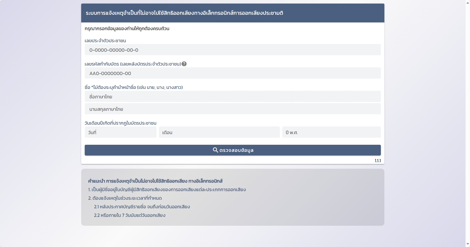 - ออกเสียงประชามติ : แจ้งได้ก่อนวันออกเสียง หรือภายใน 7 วันหลังออกเสียง (14 ม.ค.-7 ก.พ.69 หรือ 9 -15 ก.พ.69)