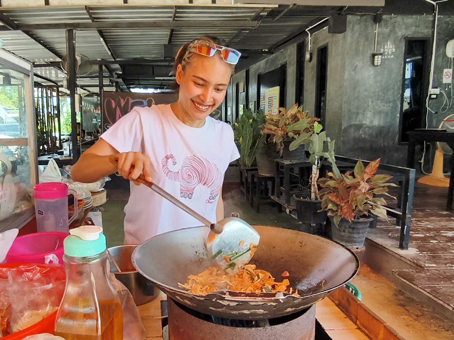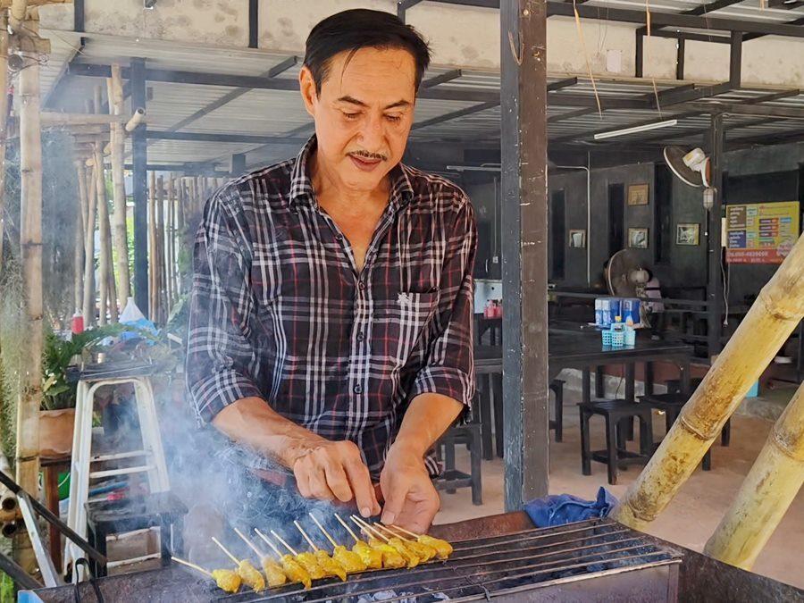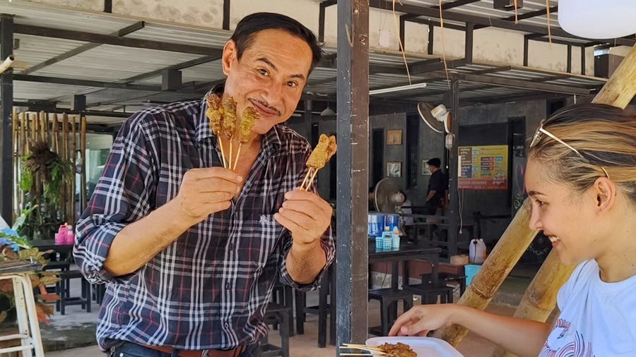 เมื่อไปถึงได้พบนายทองขาว กำลังยืนย่างสะเต๊ะไก่และเนื้อ พร้อมเดินเสิร์ฟอาหารให้กับลูกค้าอย่างตั้งอกตั้งใจ ส่วนน้องมิล กนกวรรณ ภรรยาสาวสวย กำลังลงมือทำผัดไทยสูตรโบราณ และก๋วยเตี๋ยว เพื่อเสิร์ฟให้กับลูกค้าด้วยความยิ้มแย้ม โดยบรรยากาศภายในร้านเป็นแบบสบายๆ มีทั้งโซนด้านนอกและห้องแอร์ไว้บริการลูกค้า
