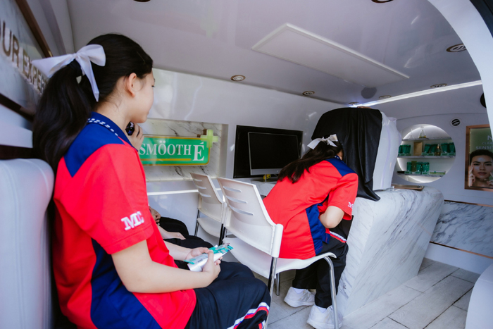 นางสาวศุภาพิชญ์ พิทยานุกุล ประธานเจ้าหน้าที่ฝ่ายการตลาด บริษัท สยามเฮลท์ กรุ๊ป จำกัด กล่าวถึงแคมเปญ “Smooth E Mobile Clinic” ว่า หลังจากแบรนด์ทุ่มงบทำการตลาดทางออนไลน์ต่อเนื่องตั้งแต่ต้นปี ทำให้เข้าถึงกลุ่มคนรุ่นใหม่มากขึ้น ดังนั้นเพื่อเป็นการสร้างการรับรู้เกี่ยวกับแบรนด์ควบคู่กับการสร้างประสบการณ์จริง เชิงบวก ให้ได้เกิดการทดลองใช้สินค้าได้จริงในกลุ่มนักเรียน นักศึกษา พร้อมกับตอกย้ำคุณค่าของแบรนด์ ในเรื่องของผลิตภัณฑ์เวชสำอางสกัดจากธรรมชาติ มีความน่าเชื่อถือ และสามารถแก้ไขปัญหาผิวได้ตรงจุด จึงจัดแคมเปญ “Smooth E Mobile Clinic” นำผู้เชี่ยวชาญด้านผิวหนังลงพื้นที่ตรวจสุขภาพผิวครอบคลุมทั่วประเทศ ด้วยเครื่องวิเคราะห์สภาพผิวหน้าที่สามารถดูสภาพผิวทั้งผิวหนังชั้นบนและชั้นที่ลึกลงไป เพื่อวิเคราะห์ปัญหาและให้คำแนะนำเรื่องการใช้ผลิตภัณฑ์ให้ตรงกับผิวเฉพาะบุคคล โดยตั้งเป้าเจาะใจกลุ่มคนรุ่นใหม่ในกรุงเทพฯ – ปริมณฑล และจังหวัดหัวเมืองใหญ่ อาทิ เชียงใหม่ ขอนแก่น ชลบุรี สงขลา ฯลฯ นอกจากนี้ยังมีแจกสินค้าตัวอย่างให้กลับไปทดลองใช้ ได้แก่ กลุ่มผลิตภัณฑ์รักษาสิว (Smooth E Acne) อาทิ ครีมกันแดด, เจลแต้มสิว สำหรับผิวบอบบางแพ้ง่าย, เจลเเต้มสิว สำหรับผิวเป็นสิวง่าย รวมถึง กลุ่มผลิตภัณฑ์โฟมล้างหน้าและครีมบำรุง และกลุ่ม Anti-Aging