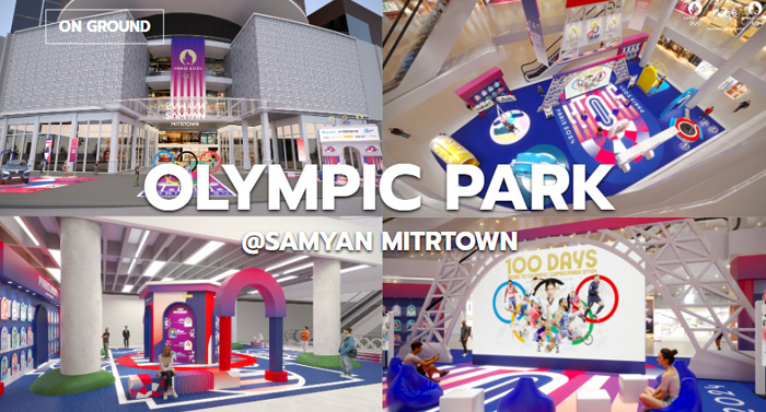 ต่อเนื่องด้วยการเนรมิตสามย่านมิตรทาวน์ให้กลาย ‘Olympic Park @ Samyan Mitrtown’ ในช่วงปลายกรกฎาคม โดยนำบรรยากาศของปารีสที่เต็มไปด้วยสีสันของโอลิมปิกเกมส์มาตั้งไว้ใจกลางกรุงเทพฯ เปิดพื้นที่ให้ชาวไทยได้ร่วมส่งกำลังใจเชียร์ทีมชาติไทยในศึกครั้งนี้ ภายในงานจะมีนิทรรศการขนาดย่อมเพื่อให้ความรู้เกี่ยวกับโอลิมปิกและพาราลิมปิกเกมส์ รวมถึงความรู้เกี่ยวกับนักกีฬาทีมชาติไทย และมีกิจกรรมจากแบรนด์ผู้สนับสนุนการถ่ายทอดสดให้ผู้เข้าชมมีส่วนร่วมกับแบรนด์อย่างสร้างสรรค์