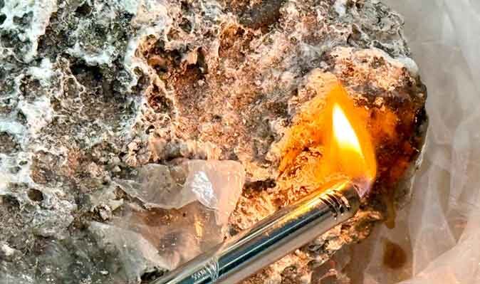 กระทั่งช่วงค่ำก้อนดังกล่าวกลับมาเกยตื้นที่จุดเดิมอีกครั้ง ตนจึงเก็บขึ้นมาตรวจดูอย่างละเอียด และทดลองใช้ไฟลน พบมีของเหลวสีเหลืองคล้ายน้ำตาเทียนไหลออกมา เนื้อสัมผัสลื่นมัน ไม่มีกลิ่นเหม็น มีเพียงกลิ่นคาวทะเล จึงเกิดความสงสัยว่าอาจเป็น “อำพันทะเล” และกังวลว่าอาจเกี่ยวข้องกับของเสีย จึงประสานเมืองพัทยาให้เข้ามาตรวจสอบ