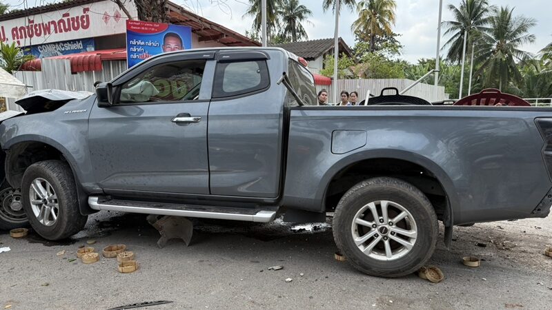 ส่วนรถคู่กรณีคือ รถกระบะ ยี่ห้ออีซูซุ ดีแมคซ์ สีเทา ทะเบียน สมุทรสงคราม คนขับชื่อ นายมนิต (ขอสงวนนามสกุล) อายุ 38 ปี นอกจากนี้ ยังมีรถเก๋งได้รับความเสียหายอีก 1 คัน และรถจักรยานยนต์ได้รับความเสียหายอีก 2 คัน พบผู้บาดเจ็บเป็นคนขับรถจักรยายนต์ชื่อ นายเอ (นามสมมติ) อายุ15 ปี ผู้บาดเจ็บทั้งหมดนำส่งโรงพยาบาลใกล้เคียง