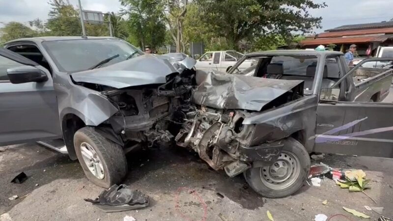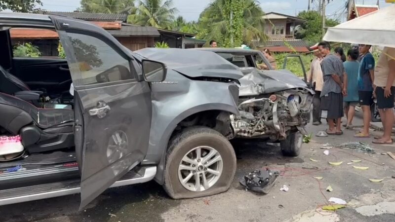 สลด พ่อค้าปลาทูนึ่ง ขับรถหลับใน พุ่งข้ามเลนประสานงาอีกคัน ลุงวัย60เสียชีวิต รถพังยับ5คัน