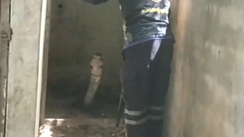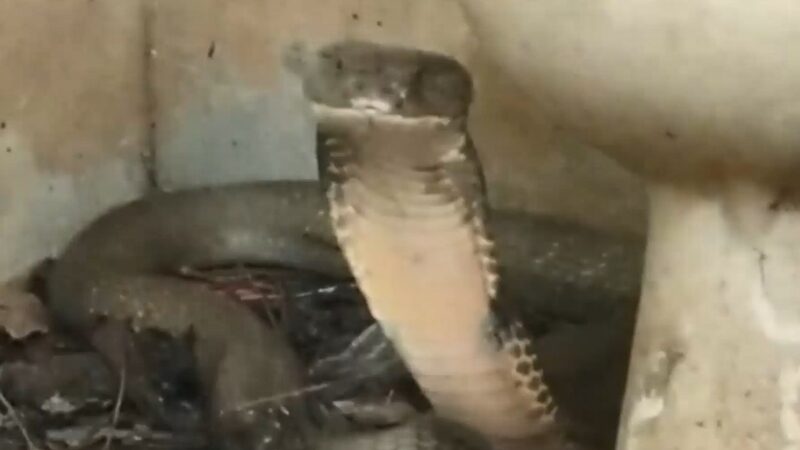 ได้ยินเสียงดังแกรก ๆ หันไปดูแทบช็อก โดดเปลหนี งูจงอางยักษ์ ยาว 4 เมตร บุกบ้าน เลื้อยซุกห้องน้ำ ชูคอสูงขู่เจ้าหน้าที่ ไม่พลาดแห่เลขที่บ้านลุ้นโชค