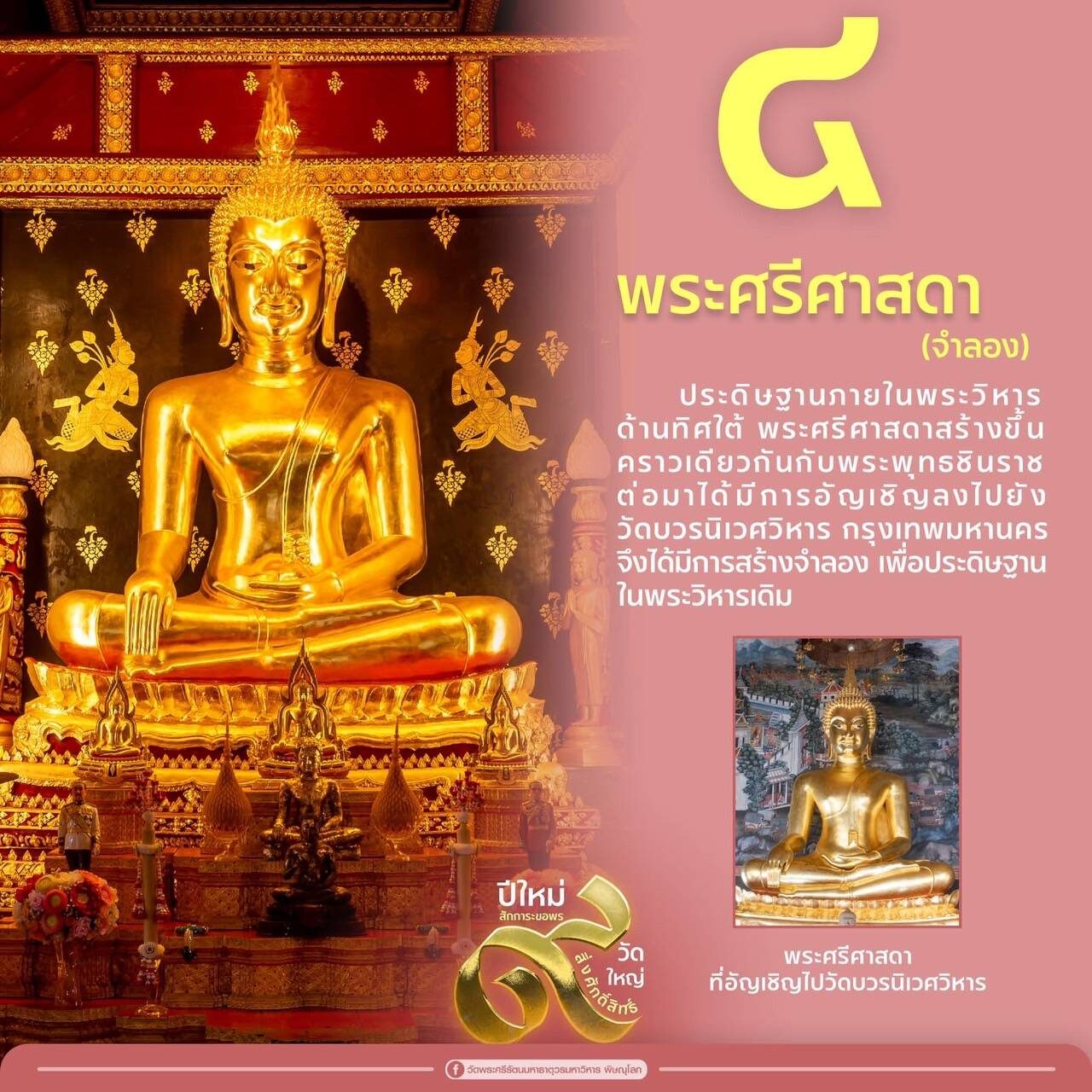 อ่านข่าวต้นฉบับได้ที่ : เชิญชวน สักการะขอพร 9 สิ่งศักดิ์สิทธิ์ วัดพระพุทธชินราช เสริมสิริมงคลรับปีใหม่ 69