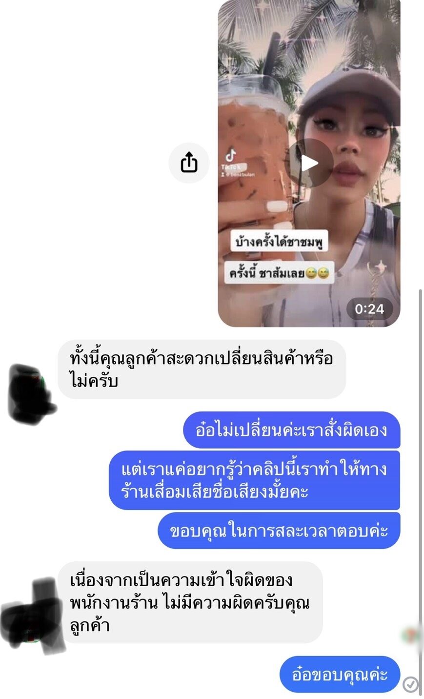 แต่กลับมีชาวเน็ตเข้ามาคอมเม้นต์โดยใช้ถอยทำรุนแรงต่างๆ นานา ซึ่งตนก็ไม่รู้ว่าได้ทำผิดอะไรถึงได้เข้ามาต่อว่าขนาดนี้ แต่พอเริ่มจับใจความได้จึงรู้ว่า ตนใช้คำพูดผิดเกี่ยวกับการสั่งสินค้าผิด คือถ้าสั่งชานมไข่มุกทางร้านสะดวกซื้อจะทำชาไทย (สีส้ม) มาให้ แต่จริงๆ คือตนอยากกิน "ชานมไต้หวันไข่มุก" ซึ่งเป็นการเข้าใจผิด