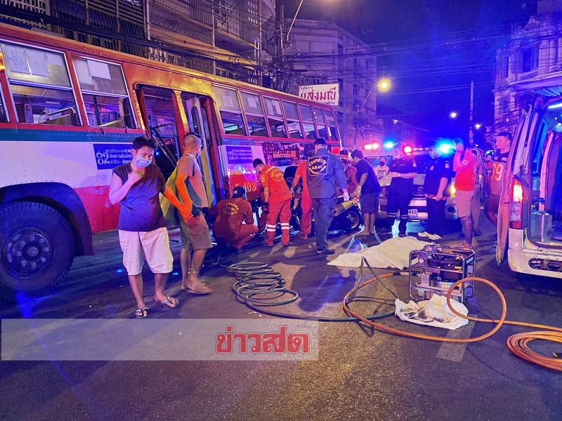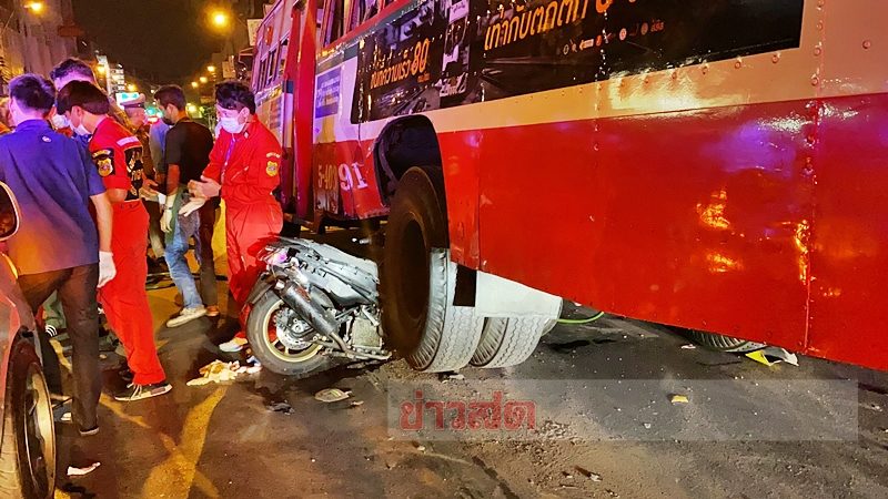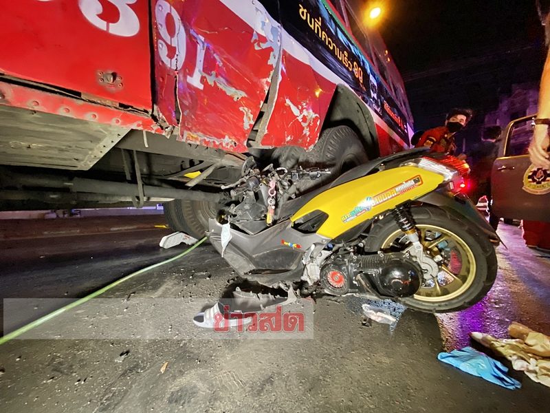 เสียงเร่งเครื่องดังมาก! หนุ่มขี่จยย.ย้อนศร พุ่งชนรถเมล์ ดับคาใต้ท้องรถ