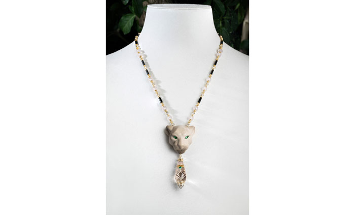 สำหรับผลงานชิ้นนี้ คาร์เทียร์ใช้ความเชี่ยวชาญในเทคนิค “Serti Pelage” ที่จำลองลักษณะขนเสืออย่างสมจริง มาใช้ในการนำเสนอดีไซน์หัวเสือไขว้ และในอดีต มาเรีย เฟลิกซ์ (Maria Félix) นักแสดงชาวเม็กซิกันก็เคยเป็นเจ้าของผลงานที่มีความคล้ายคลึงกันกับชิ้นนี้