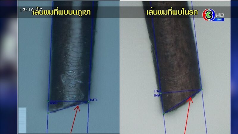 จนได้ภาพเส้นผมทั้งจากบนภูเขาและในรถลุงพล เอาไปตรวจสอบ เป็นเส้นเดียวกันมั้ย?