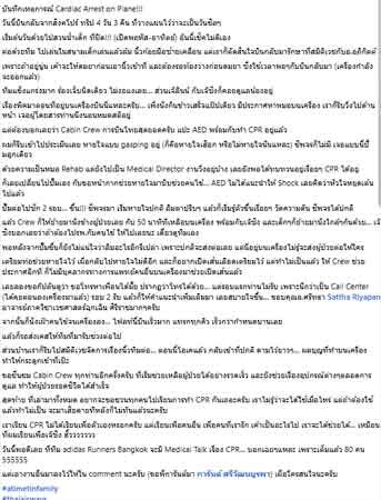 อ่านข่าวต้นฉบับได้ที่ : หมอเผยนาทีช่วยชีวิต ผู้โดยสารหยุดหายใจบนเครื่อง สายการบินไทย หลังส่งสัญญาณฉุกเฉิน