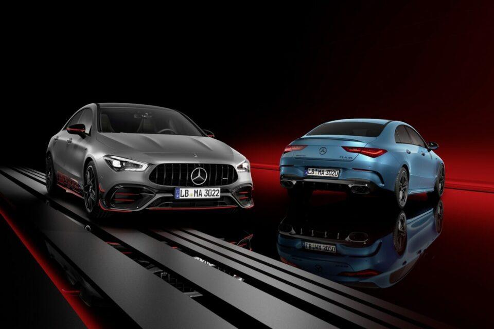 ส่วน Mercedes-AMG CLA ปรับเช่นกันแต่ปรับน้อยมากเพิ่มคิ้วสีส้มใส่ในช่องระบายอากาศสองฝั่งและคิ้วใต้กันชนหน้าสามจุด และคิ้วเสริมที่ขอบกันชนหน้าในรุ่น CLA 45 ส่วนรุ่น CLA 35 ปรับหล่อใหม่แบบเดียวกับ CLA 45 ตั้งแต่ กระจังหน้า AMG-Specific radiator grille ที่ให้ความรู้สึกสปอร์ตในสไตล์เข้ม แนวตั้ง 13 ซี่ พร้อมหน้าตาแบบเดียวกับรุ่น CLA ปกติ แต่มาในสไตล์ AMG พร้อมล้ออัลลอยลายใหม่ห้าก้าน 19 นิ้ว พร้อมยาง 245/35 R19