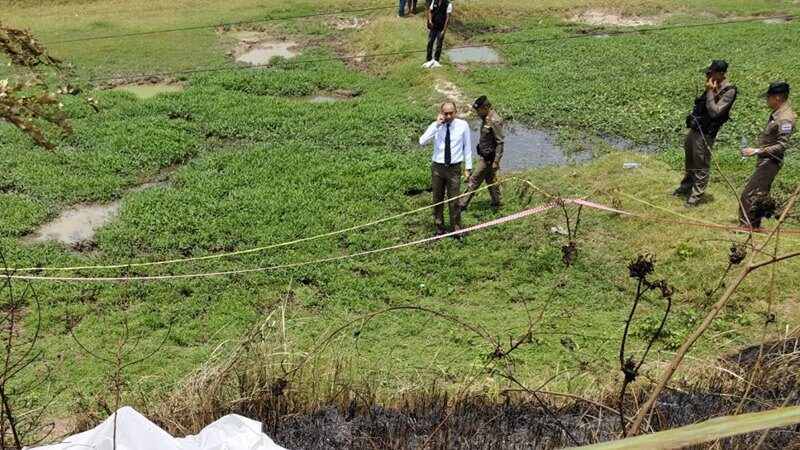 ที่เกิดเหตุพบศพชาย สภาพศพนอนหงายถูกไฟไหม้ดำเป็นตอตะโก คาดว่าเสียชีวิตมาแล้วไม่ต่ำกว่า 2 วัน โดยไม่พบเอกสารระบุตัวตนว่าเป็นใครมาจากไหน