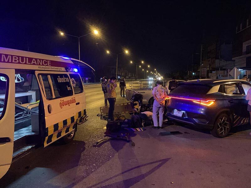 มักง่าย รถยนต์เลี้ยวขวาฝ่าไฟแดง หนุ่ม 26 ขี่จยย.มาอีกฝั่ง พุ่งชนกลางลำ ดับสลด ชาวบ้านวอนปรับปรุงสัญญาณไฟ เกิดอุบัติเหตุแล้วหลายครั้ง