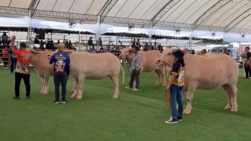 แห่ยลโฉม "น้องข้าวตังขาหมู" ควายแคระ บั้นท้ายฮิปโป มูลค่า 20 ล้านบาท ฮือฮา กลางเทศกาลควายไทย