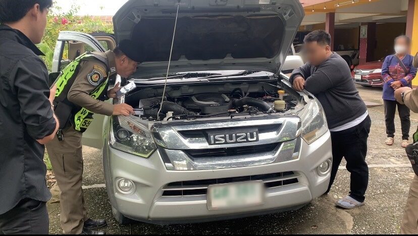 รวบหนุ่มขับเบนซ์ป้ายแดง สวมทะเบียนปลอม อ้างซื้อมาจากเน็ต ในราคา 3 พันบาท เพราะเลขสวยดี อีกรายเป็นกระบะทะเบียนปลอม บอกพ่อซื้อมาให้