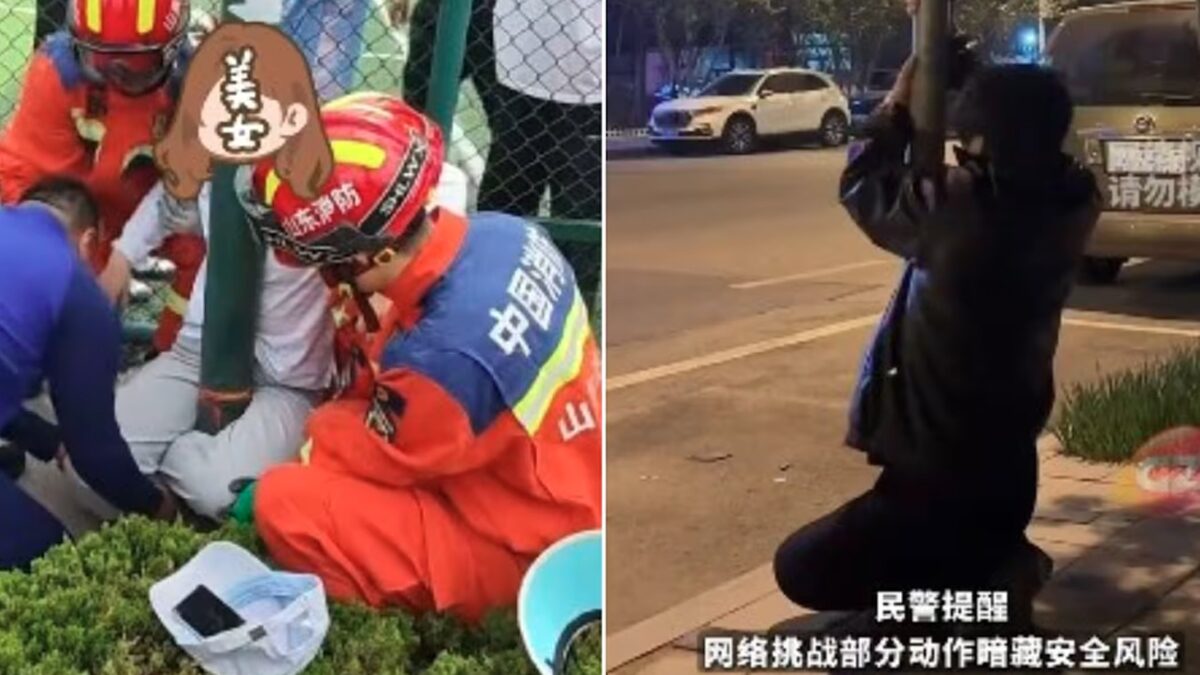 อย่าหาทำ! หนุ่มสาวจีนฮิตชาเลนจ์ “นั่งขัดสมาธิกอดเสาไฟ” สุดท้ายขยับไม่ได้ ต้องเรียกเจ้าหน้าที่ช่วย