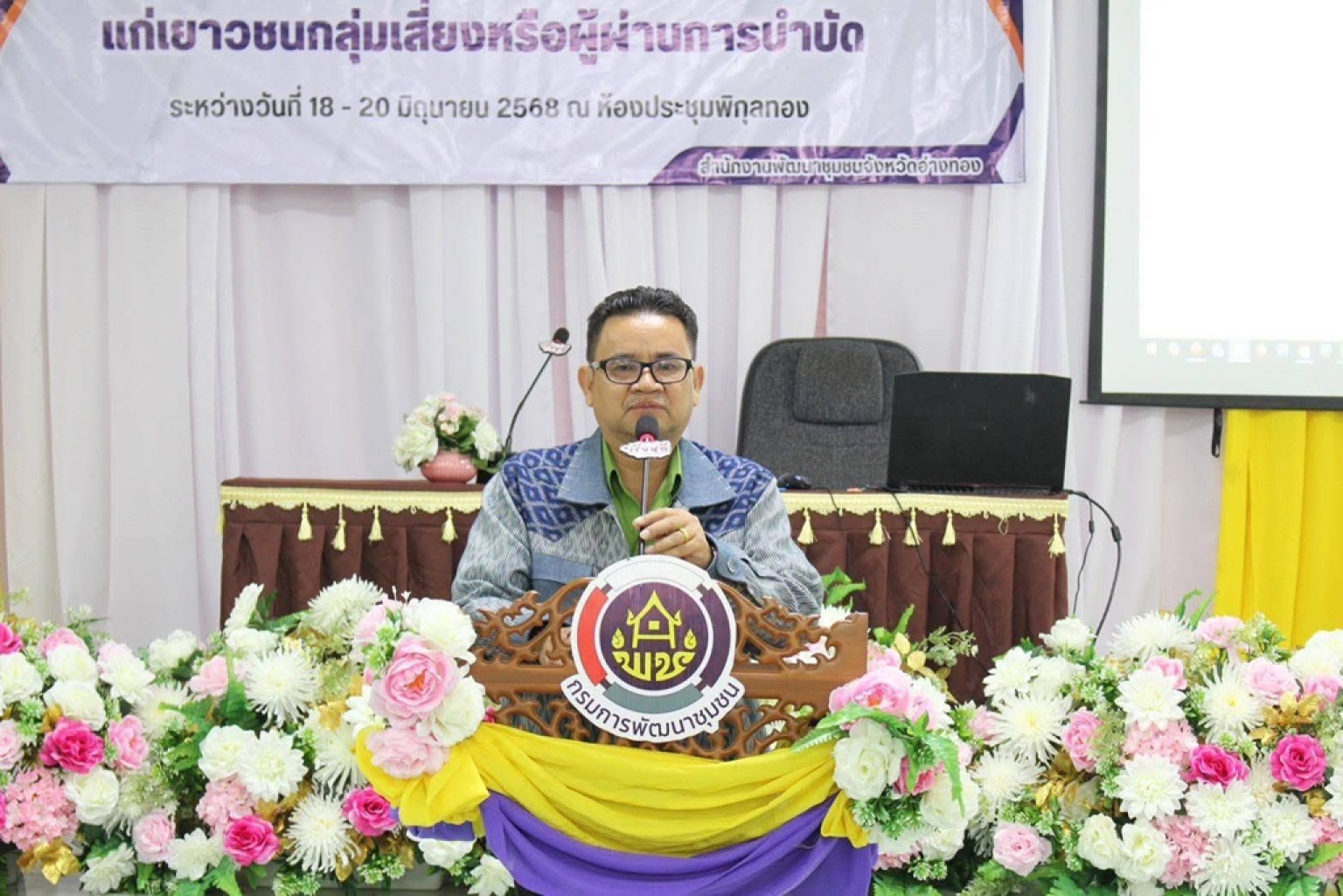 ด้วยจังหวัดอ่างทอง โดยสำนักงานพัฒนาชุมชนจังหวัดอ่างทอง กำหนดดำเนินโครงการสนับสนุนสัมมาชีพชุมชนแก่เยาวขนกลุ่มเสี่ยงหรือผู้ผ่านการบำบัด ระหว่างวันที่ 18-20 มิถุนายน 2568 โดยมีวัตถุประสงค์เพื่อดูแล ช่วยเหลือ เฝ้าระวัง และสร้างแรงจูงใจให้เยาวชนกลุ่มเสี่ยงหรือผู้ผ่านการบำบัดได้ประกอบอาชีพที่สุจริต และไม่กลับไปเกี่ยวข้องกับยาเสพติด เพื่อให้เครือข่ายกองทุนแม่ของแผ่นดินระดับจังหวัด สามารถหนุนเสริมสัมมาชีพชมชน ให้กับเยาวชนกลุ่มเสี่ยงหรือผู้ผ่านการบำบัด โดยมีนโยบายเกี่ยวกับการป้องกันและแก้ไขปัญหายาเสพติด ประเภทของยาเสพติด โทษพิษภัยอันตรายจากยาเสพติด และผลกระทบจากปัญหายาเสพติดเน้นแนวทางการบำบัดฟื้นฟูผู้เสพผู้ติดยาเสพติดในชุมชนหาทางการเฝ้าระวัง ค้นหาส่งต่อ บำบัด และดูแลติดตาม ผู้ป่วยยาเสพติดที่มีอาการทางจิตให้ความรู้เรื่องกฎหมายที่เกี่ยวข้องกับยาเสพติด"
