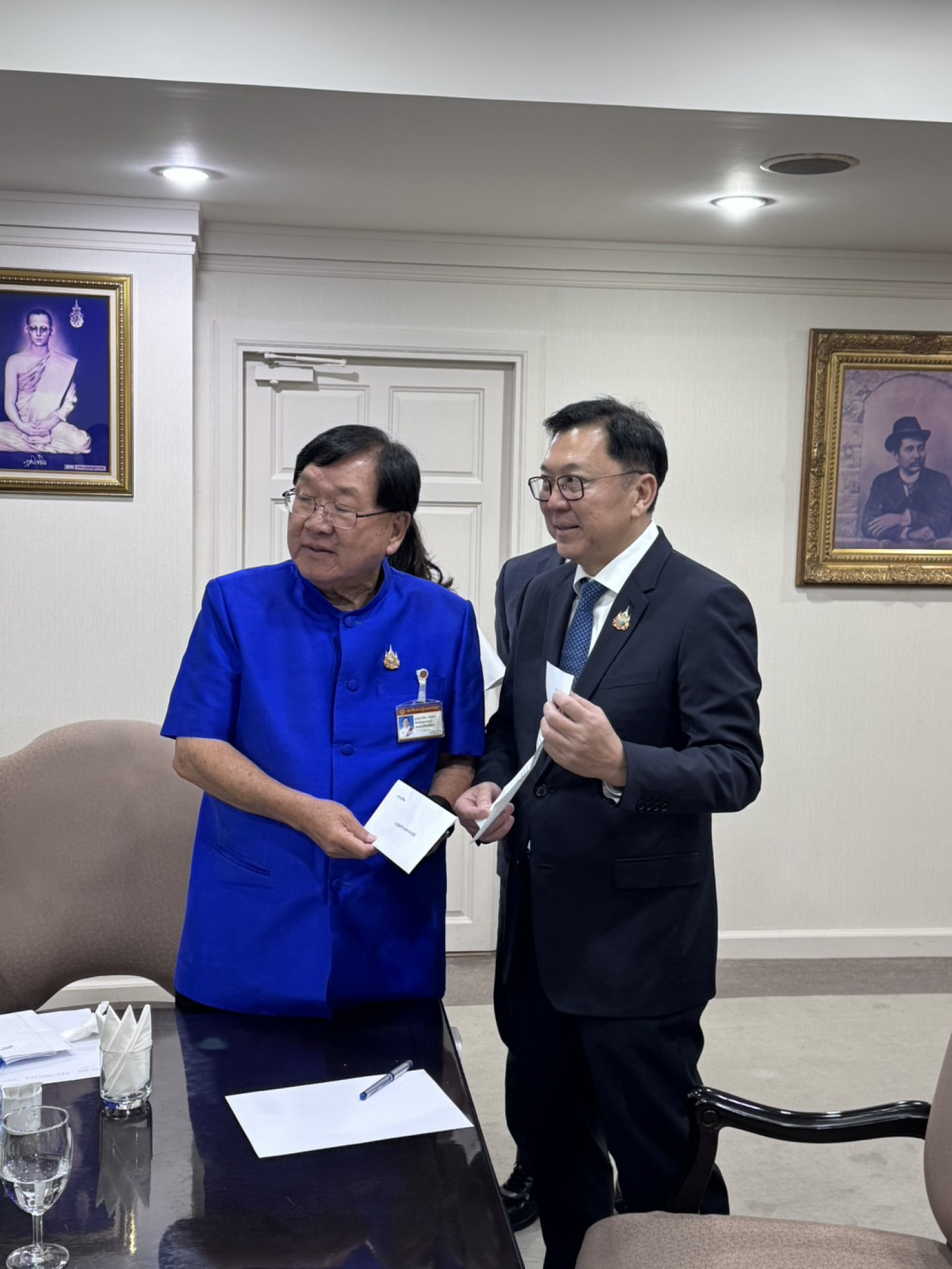 วันที่ 9 กรกฎาคม 2568 ณ กระทรวงพาณิชย์ นายจตุพร บุรุษพัฒน์ รัฐมนตรีว่าการกระทรวงพาณิชย์ พร้อมด้วยร้อยตรีจักรา ยอดมณี รองปลัดกระทรวงพาณิชย์ และคณะผู้บริหารระดับสูงของกระทรวง ให้การต้อนรับและรับมอบหนังสือร้องเรียนจาก นายประภัตร โพธสุธน สมาชิกสภาผู้แทนราษฎร จังหวัดสุพรรณบุรี เขต 5 ในประเด็นปัญหาราคาข้าวเปลือก และความเดือดร้อนของชาวนา