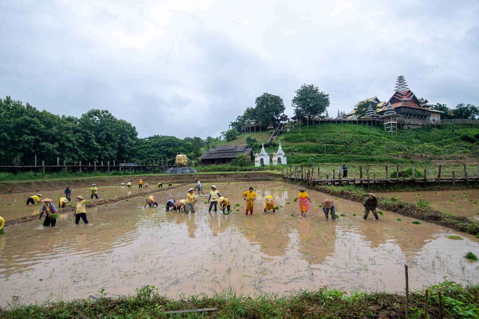 วันที่ 28 กรกฏาคม 2568 เจ้าอธิการจิตตพัฒน์ อคฺคปญฺโญ เจ้าคณะตำบลจองคำ เขต 2 เจ้าอาวาสวัดภูสมณาราม นำพุทธศาสนิกชนจำนวนมาก จัดกิจกรรมลงแขก ดำนา ปล่อยปลา เนื่องในวันเฉลิมพระชนมพรรษา พระบาทสมเด็จพระวชิรเกล้าเจ้าอยู่หัว 28 กรกฎาคม 2568 ณ วัดภูสมณาราม บ้านกุงไม้สัก ตำบลปางหมู อำเภอเมือง จังหวัดแม่ฮ่องสอน โดยทางวัดภูสมณาราม ได้ร่วมกับคณะศรัทธาญาติโยม สาธุชน และผู้มีจิตศรัทธา จัดกิจกรรมลงแขก ดำนา เฉลิมพระเกียรติ ฯ พระบาทสมเด็จพระเจ้าอยู่หัว ซึ่งดำเนินการมาเป็นปีที่ 2 โดยได้รับการอนุเคราะห์จากองค์การบริหารส่วนจังหวัดแม่ฮ่องสอน ทำการปรับพื้นที่สำหรับการทำนาให้กับทางวัดภูสมณาราม
