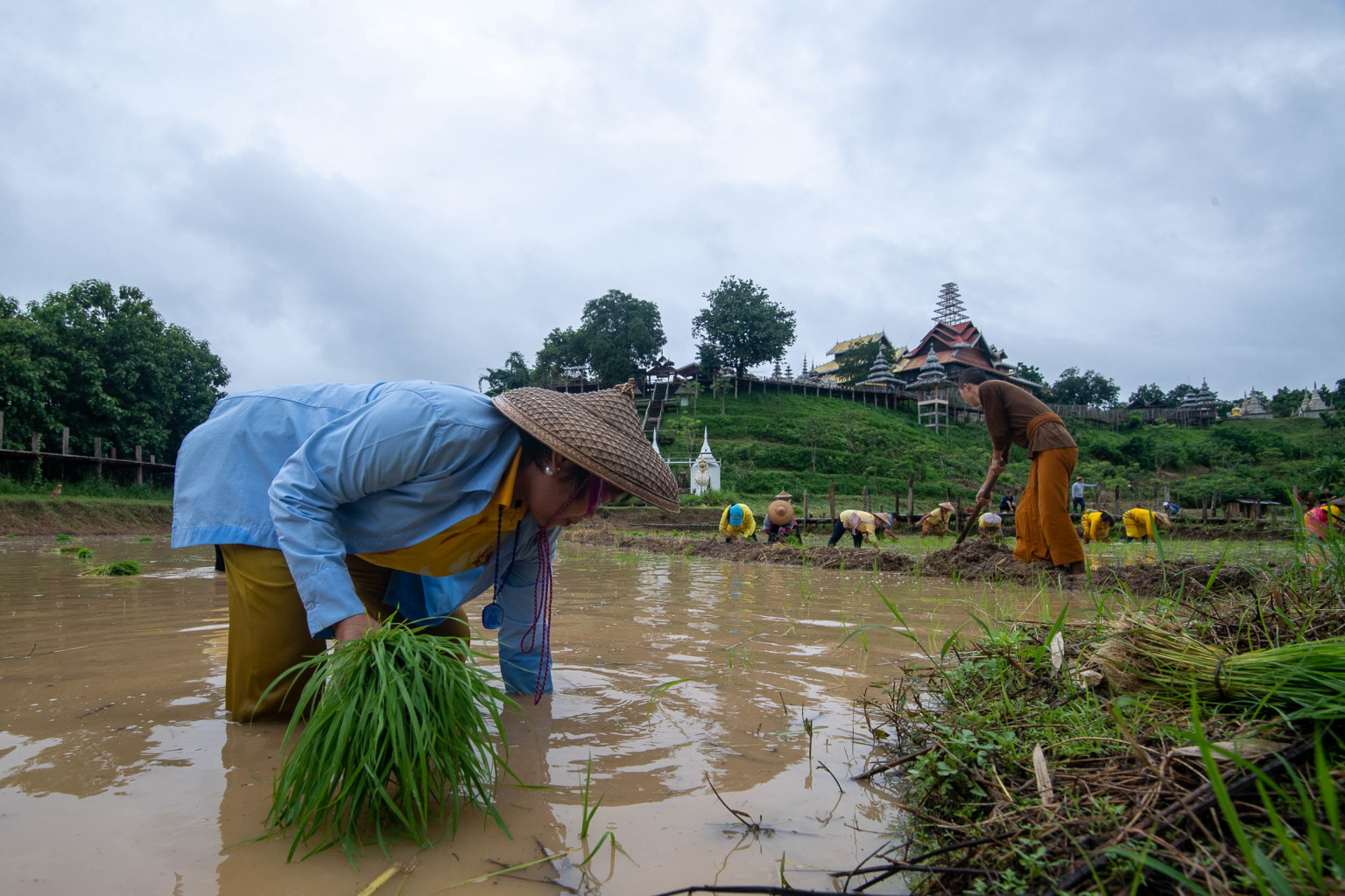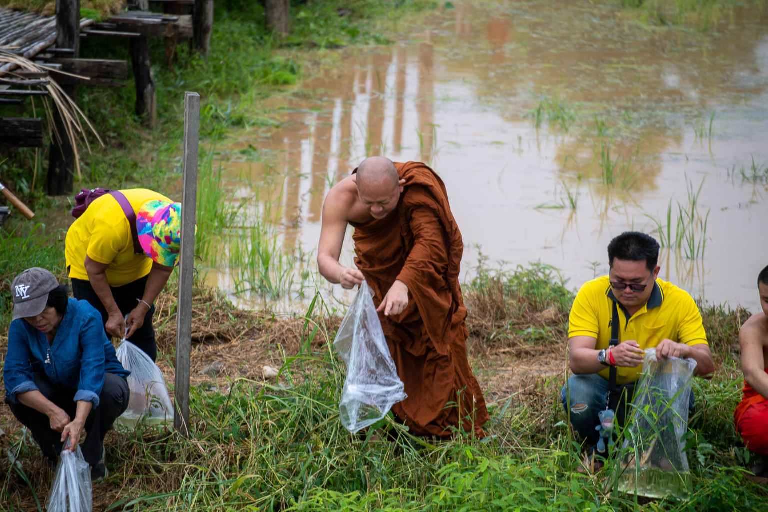 เจ้าอาวาสวัดภูสมณารามนำพุทธศาสนิกชนจัดกิจกรรมลงแขก ดำนา ปล่อยปลาเฉลิมพระเกียรติฯในหลวง