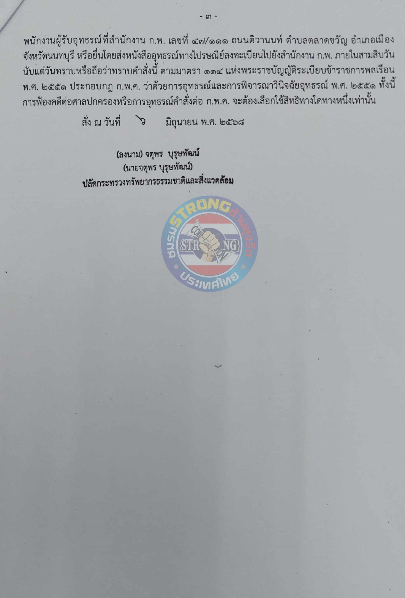 เมื่อวันที่ 6 มิถุนายน 2568 ที่ผ่านมา มีคำสั่งกระทรวงทรัพยากรธรรมชาติและสิ่งแวดล้อม ที่ ๑๙๔ /๒๕๖๘