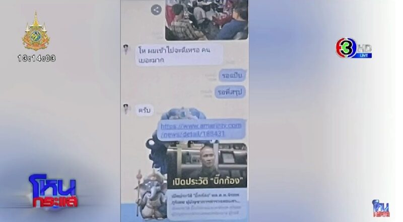 พร้อมทั้งให้ทีมงานเปิดแชท ฟิล์ม ในแชทมีภาพเหตุการณ์วันนั้น แล้ว ฟิล์ม ตอบแชทว่า “โหผมเข้าไปจะดีเหรอ คนเยอะมาก” อีกฝั่งก็ตอบว่า “รอแป๊บ รอพี่สรุป” พร้อมทั้งมีเอาภาพขึ้นจอเลย
