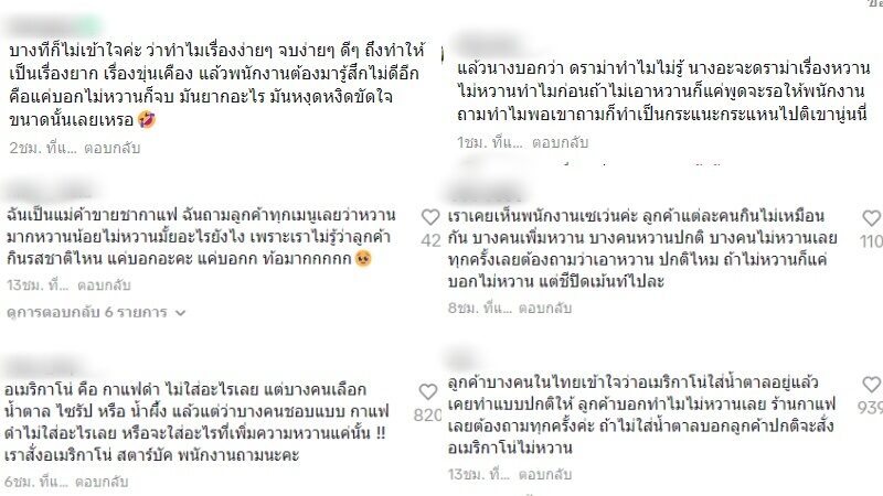 อ่านข่าวต้นฉบับได้ที่ : ถกสนั่น! สั่งอเมริกาโน่ อย่าถามว่าหวานมั้ย ลั่นคนชงคงไม่ได้เรียนบาริสต้า เลยไม่รู้