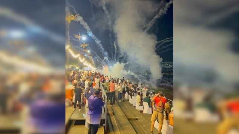 จากการสอบถามนักท่องเที่ยวรายหนึ่ง เปิดเผยว่า ขณะนั่งรับประทานอาหารและชมเรือไฟอยู่ที่ลานพาข้าวแลงอยู่นั้น ก็มีการจุดพลุโชว์ที่หน้าลานพาแลง ขณะที่พลุ 2-3 ลูกแรกพวยพุ่งขึ้นสูง และระเบิดบนท้องฟ้าได้อย่างสวยงามตระการตา แต่จู่ๆพลุลูกต่อมากลับแตกออกมาด้านข้าง และพุ่งมาหาตนและนักท่องเที่ยวกลุ่มใหญ่ที่อยู่บริเวณนั้นได้รับบาดเจ็บไปตามๆกัน
