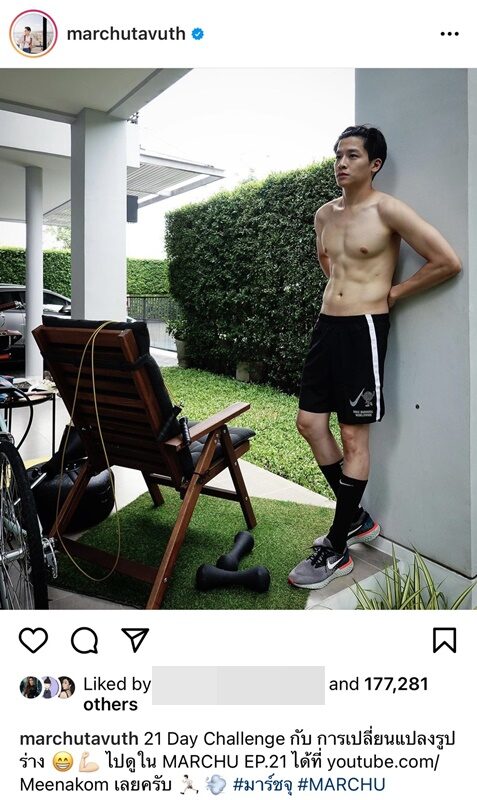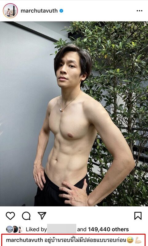 ล่าสุดหนุ่มมาร์ช ได้ออกมาเผยหุ่นเฟิร์ม ซิกซ์แพ็กแน่น ในช่วงอยู่บ้านจากสถานการณ์โควิดระบาดระลอก 3 พร้อมเขียนแคปชั่นว่า “อยู่บ้านรอบนี้ไม่มีปล่อยแบบรอบก่อน” เห็นแล้วบอกเลยว่า…ของเขาดีจริงๆ ในขณะที่ชาวเน็ตพร้อมใจกันส่งอีโมจิไฟลุกเต็มไอจีไปหมด