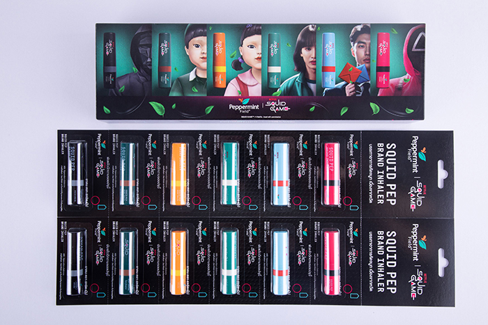 โดยที่มาของชื่อ “ยาดม สควิด เป๊ป” ตั้งใจให้สะท้อนถึงการเชื่อมโยงระหว่างชื่อซีรีส์ Squid Game กับแบรนด์ เป๊ปเปอร์มิ้นท์ ฟิลด์ โดยใช้กลิ่นเป๊ปเปอร์มิ้นท์ ซึ่งเป็นเอกลักษณ์ผสานกับน้ำมันหอมระเหยจากมะกรูด ที่ให้กลิ่นหอมสดชื่น ช่วยผ่อนคลายและรีเฟรช จนได้ออกมาเป็นกลิ่นใหม่ที่สะท้อนคาแรกเตอร์ที่ลึกลับของซีรีส์ได้อย่างลงตัว นอกจากกลิ่นที่โดนใจแล้ว แพ็กเกจจิ้งยังโดดเด่นไม่แพ้กัน โดยเลือกใช้สีชมพู สีเขียวอ่อน สีดำ สีฟ้า สีส้ม และสีเขียวเข้ม ซึ่งเป็นสีธีมหลักของซีรีส์ Squid Game มีให้เลือกถึง 6 สี 6 แบบ คอลเลกชันที่น่าสะสมเหมาะสำหรับแฟนซีรีส์และผู้รักของสะสม
