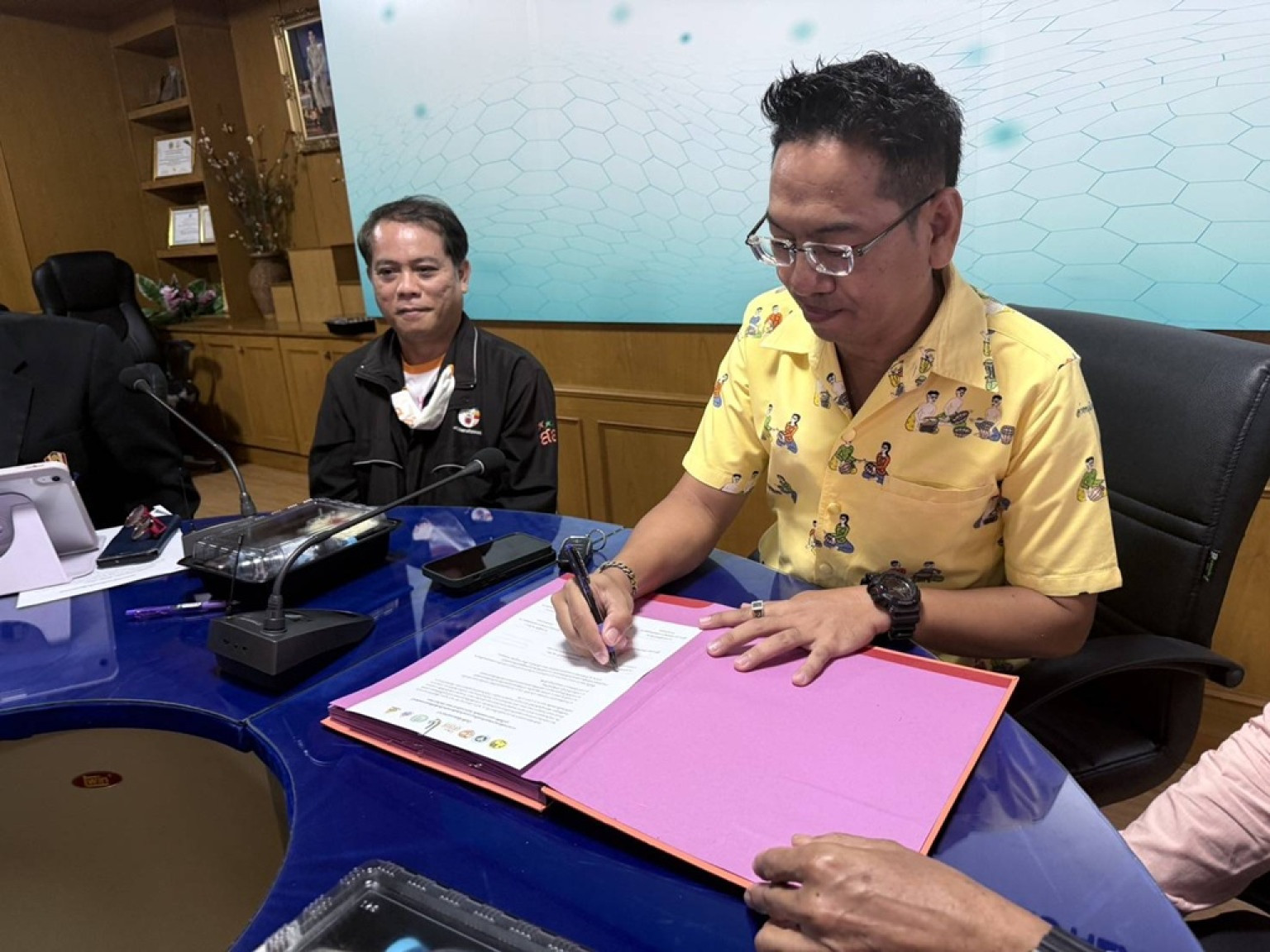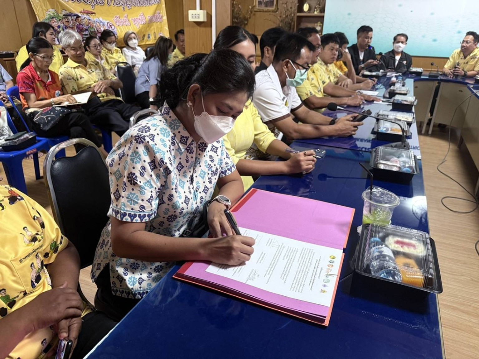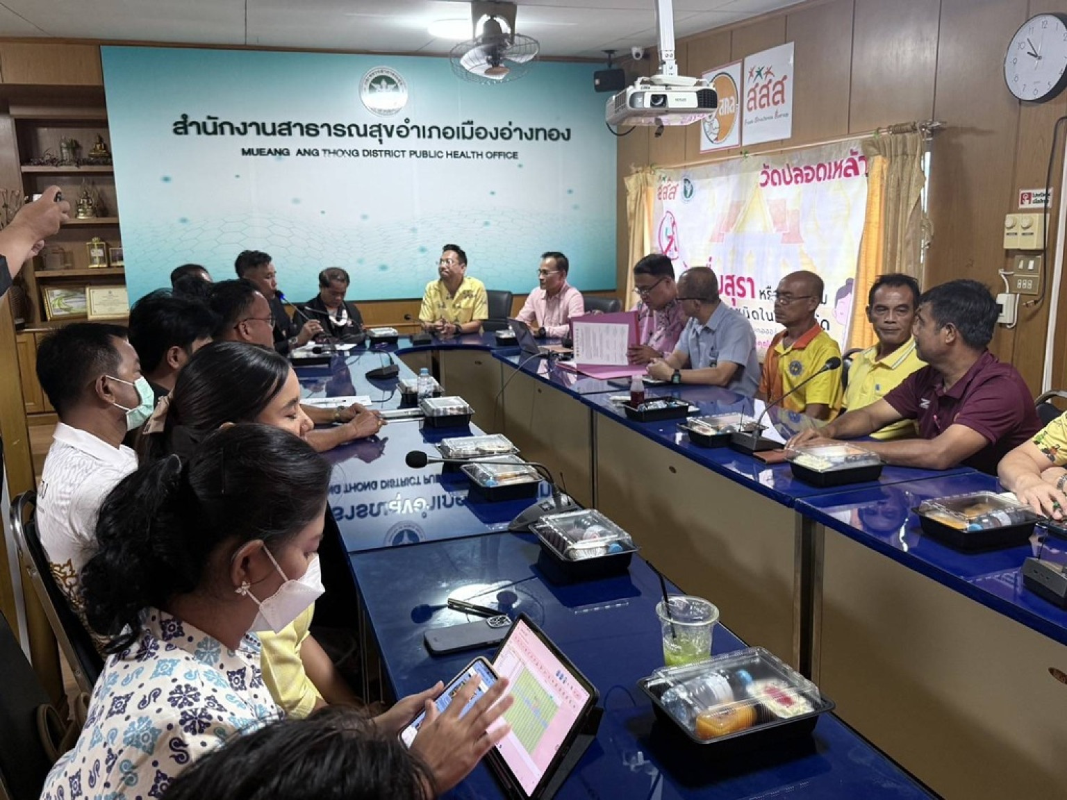 สาธารณสุขอำเภอเมืองอ่างทอง ทำ บันทึกข้อตกลง MOU ความร่วมมือรณรงค์และขับเคลื่อนงานลดปัจจัยเสี่ยงเหล้าเครื่องดื่มที่มีแอลกอฮอล์บุหรี่ บุหรี่ไฟฟ้า