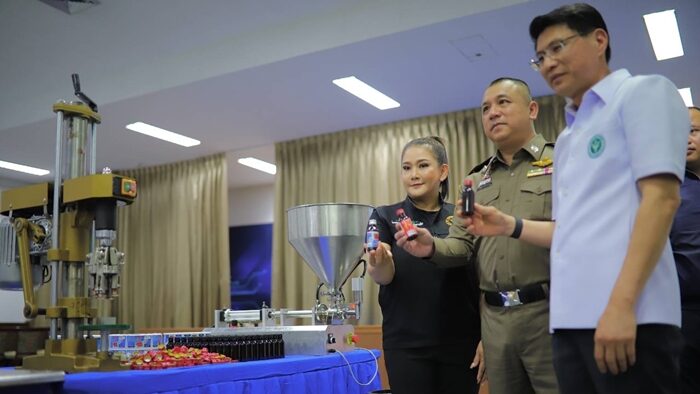 โดยได้ลงพื้นที่ร่วม อย. ตรวจร้านขายยากลุ่มเสี่ยง เมื่อวันที่ 21 พ.ค.2568 ซึ่งพบยาปลอมในร้านขายยา จากนั้นจึงเฝ้าระวังกวาดล้างร้านขายยาพบยาแก้ไอปลอมชนิดดังกล่าวจำหน่ายจำนวนมาก จึงสอบสวนหาแหล่งที่ผลิตจนถึงต้นตอโดยใช้เวลาเพียง 1 เดือนจึงสามารถทลายโรงงานและจับกุมผู้ผลิตรายใหญ่ได้