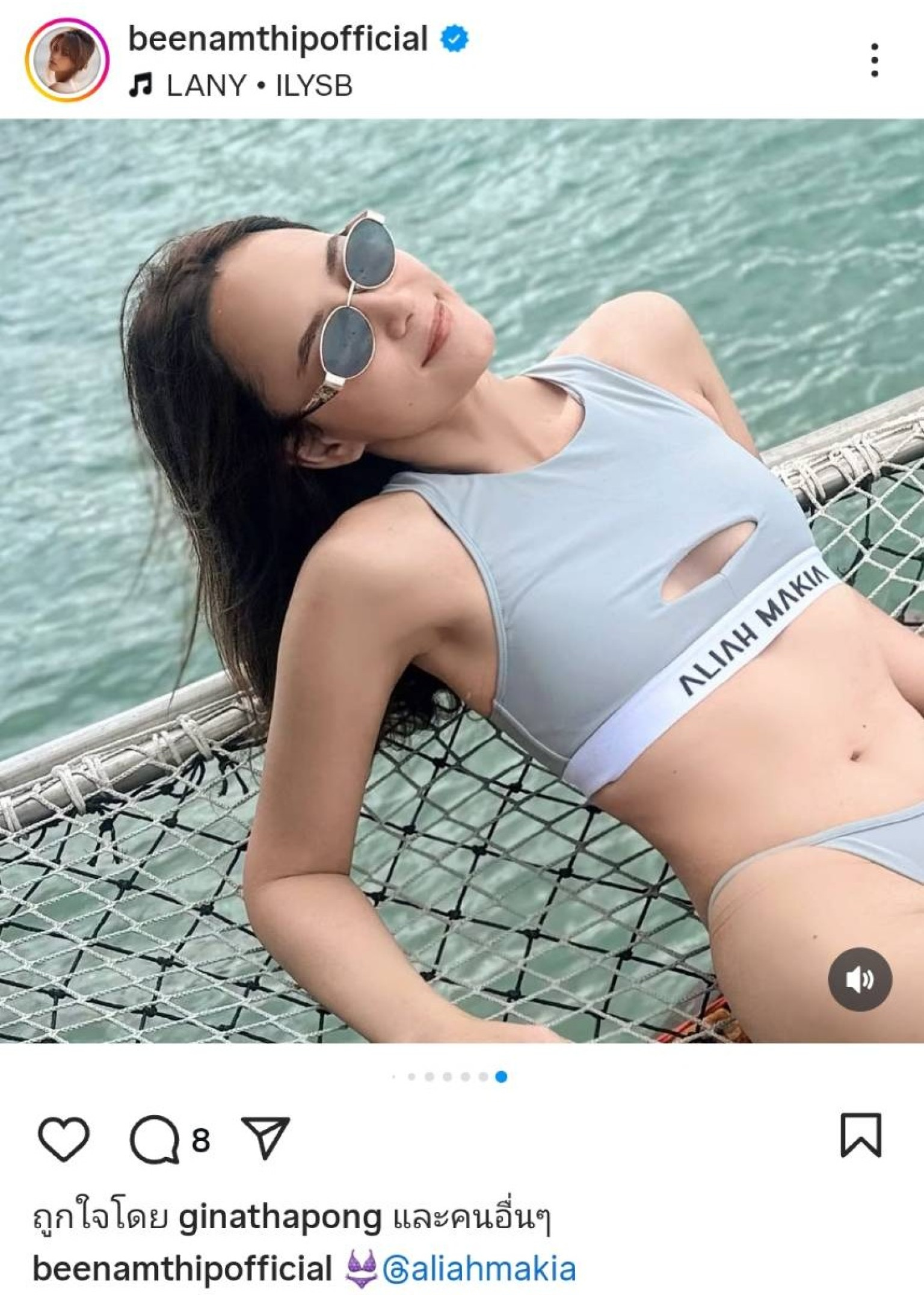 ปล่อยลุคแซ่บสะท้านน้ำทะเลกันอีกครั้ง! สำหรับนางเอกสาวสุดฮอต “บี น้ำทิพย์ จงรัชตวิบูลย์” ที่ล่าสุดทำเอาอินสตาแกรมลุกเป็นไฟ เมื่อเจ้าตัวโพสต์ภาพเที่ยวทะเลในชุดบิกินี่สีเทาพาสเทลดีไซน์สุดเก๋จากแบรนด์ Aliah Makia โชว์รูปร่างเป๊ะปังทุกองศา หุ่นฟิตไร้ที่ติ พร้อมโพสท่าเซ็กซี่ริมทะเล พื้นหลังน้ำสีฟ้าใสสุดสดชื่น