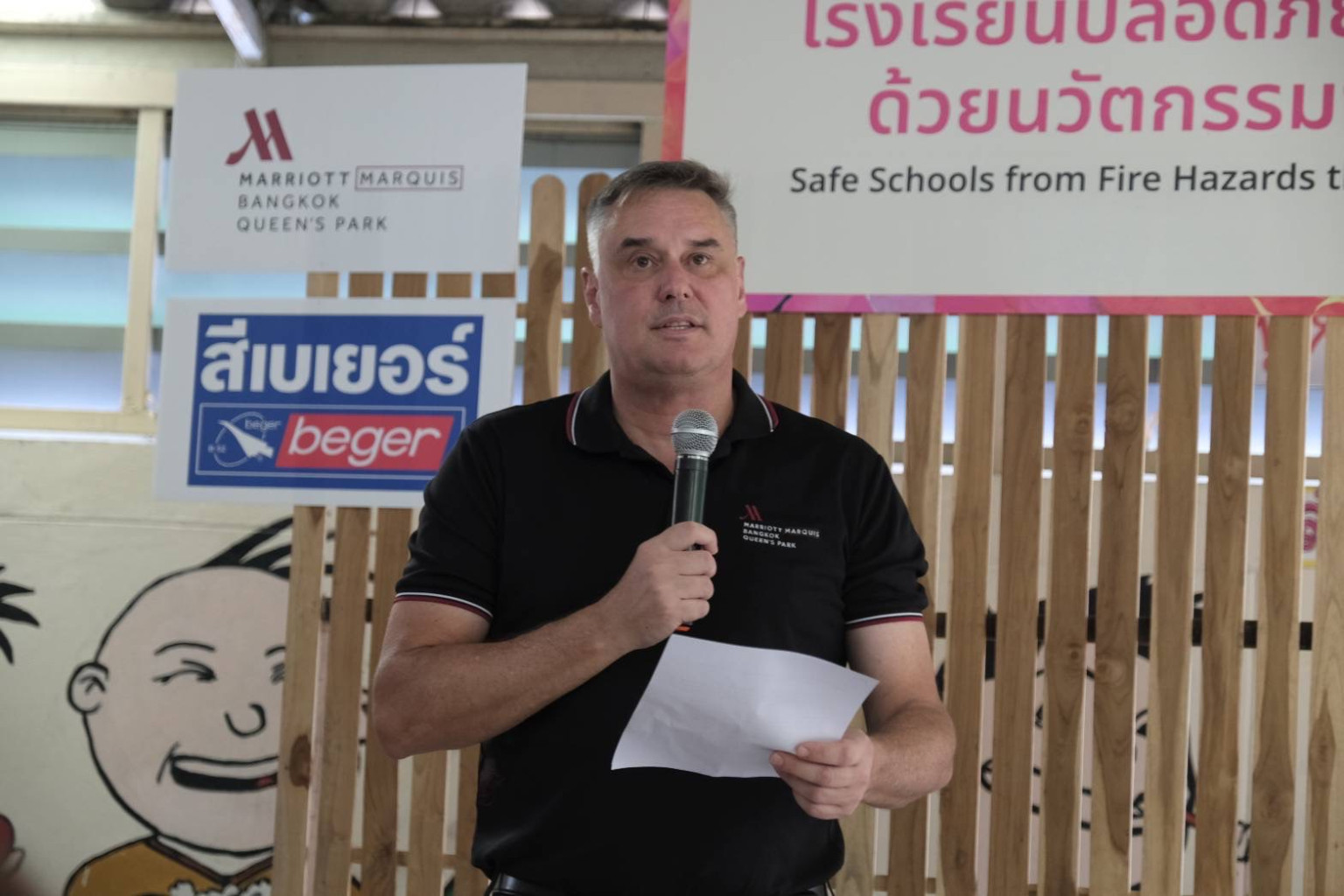 สำหรับโครงการ “โรงเรียนปลอดภัย ห่างไกลอัคคีภัยด้วยนวัตกรรมจากขยะอาหาร” เป็นการนำขยะอินทรีย์ของโรงแรมแบงค็อก แมริออท มาร์คีส์ ควีนส์ปาร์ค โดยเฉพาะเปลือกหอยนางรมเหลือทิ้งที่มีปริมาณมากถึง 1 ตันต่อเดือนจากห้องอาหารบุฟเฟ่ต์ โกจิ คิทเช่น และบาร์ มาร่วมวิจัยและพัฒนากับนาโนเทค สวทช. ในการพัฒนาเป็น "สารหน่วงไฟ" ที่ดสอบแล้วพบว่า มีสมบัติการหน่วงไฟตามมาตรฐาน UL94 V-0 ที่สามารถดับไฟได้เองภายใน 10 วินาที และไม่มีเปลวไฟหยด จากนั้น เกิดการต่อยอดกับพันธมิตรอย่างบริษัท เบเยอร์ จำกัดในการพัฒนา "สีหน่วงไฟ" ที่เหมาะสำหรับการทาภายในอาคาร โดยเฉพาะในชุมชนที่มีกลุ่มเปราะบาง ไม่ว่าจะเป็นเด็กเล็กหรือผู้สูงอายุ