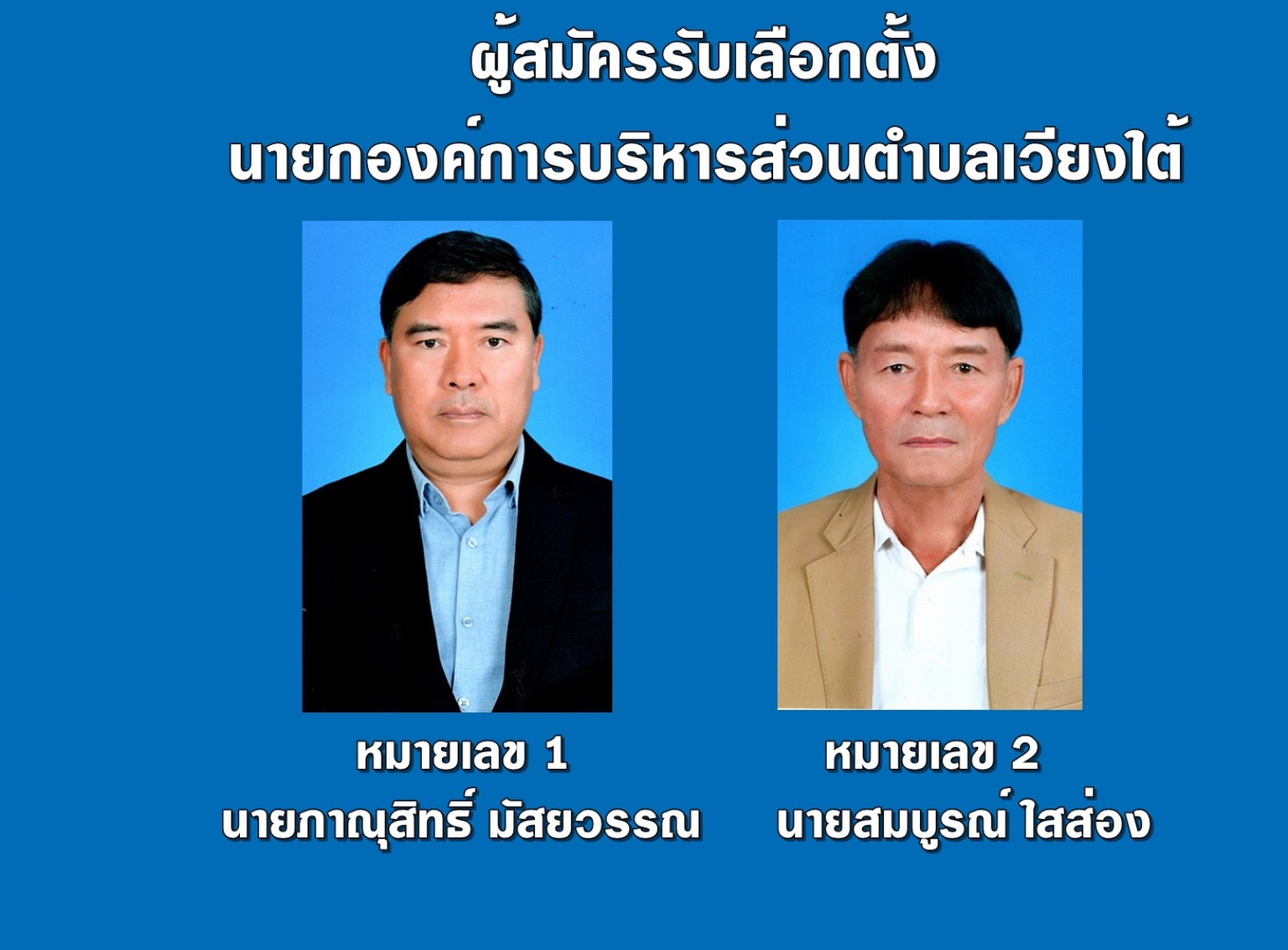 ทั้งนี้ มีผู้สมัครรับเลือกตั้งนายกองค์การบริหารส่วนตำบลเวียงใต้ จำนวน 2 คน ประกอบด้วย
