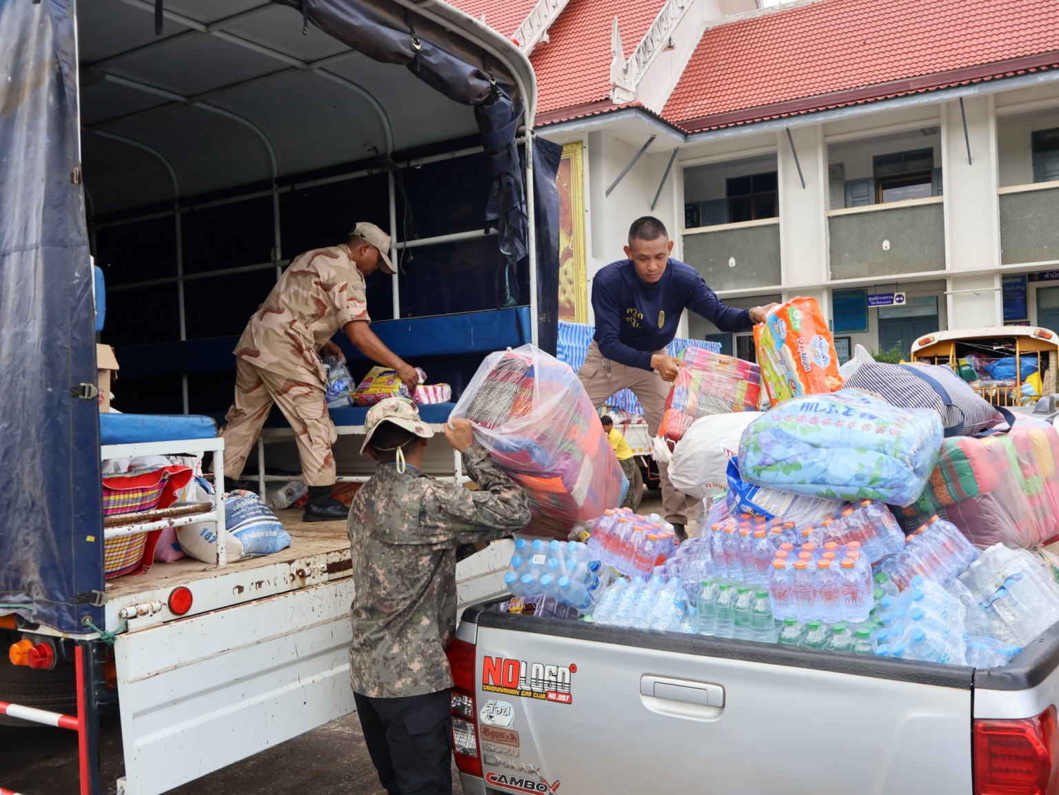 วันที่ 29 กรกฎาคม 2568 ที่ศาลากลางจังหวัดสกลนคร นายชูศักดิ์ รู้ยิ่ง ผวจ.สกลนคร และส่วนราชการที่เกี่ยวข้องทุกภาคส่วน รัมอบสิ่งของเครื่องใช้ เครื่องอุปโภคบริโภค มาม่า ปลากระป๋อง น้ำดื่ม ข้าวสาร อาหารแห้ง ยารักษาโรค ผลไม้ และอื่นจนากส่วนราชการและประชาชน ทั้ง 18 อำเภอไปมอบให้กับทหารที่ปฏิบัติหน้าที่ชายแดนกัมพูชารวมทั้งนำไปช่วยเหลือู้อพยพภัยสงคราม ที่จังหวัดอุบลราชธานี และจังหวัดศีรษะเกษ โดยสิ่งของที่นำมามอบให้มีเป็นจำนวนมากอย่างไม่เคยมีมาก่อน คาดว่าจะมีมากกว่า 20 รถบรรทุก โดยก่อนหน้านี้ก็เดินทางไปส่งมอบแล้ว กว่า 20 รถบรรทุกพร้อมเครื่องจักรกล นถลำเลียงผู้อพยพ รถบรรทุกน้ำ รถผลิตกระแสไฟฟ้า และที่กรมทหารราบที่ 3 ฤษณ์สีวะรา ปราณิสา ตรงดี ร้านแม่แต้มของฝากเมืองวานร ร้านปิ่นเกล้าหัวปลาหม้อไฟ โรงแรมริมทะเลบ้านกูด ร้านป่านทวีผล ร้านทองประทีป บ.ตรอ.คเณศวร พร้อมกัลยาณมิตร ทุกๆท่าน ร่วมส่งมอบน้ำ 415 แพ็ค และสิ่งของเครืองใช้ที่จำเป็น และบอกว่าขอเป็นแนวหลังให้กำลังใจแนวหน้า ซึ่งคาดว่าทหารจะต้องตรึงกำลังไปอีก แม้ทหารจะโดนระเบิดเฉี่ยวหน้า หลังจากเย็บแผลเสร็จก็กลับขึ้นไปสู้รบอีกเพราะเป็นห่วงเพื่อนๆ ซึ่งต้องนับถือน้ำใจจริงๆ