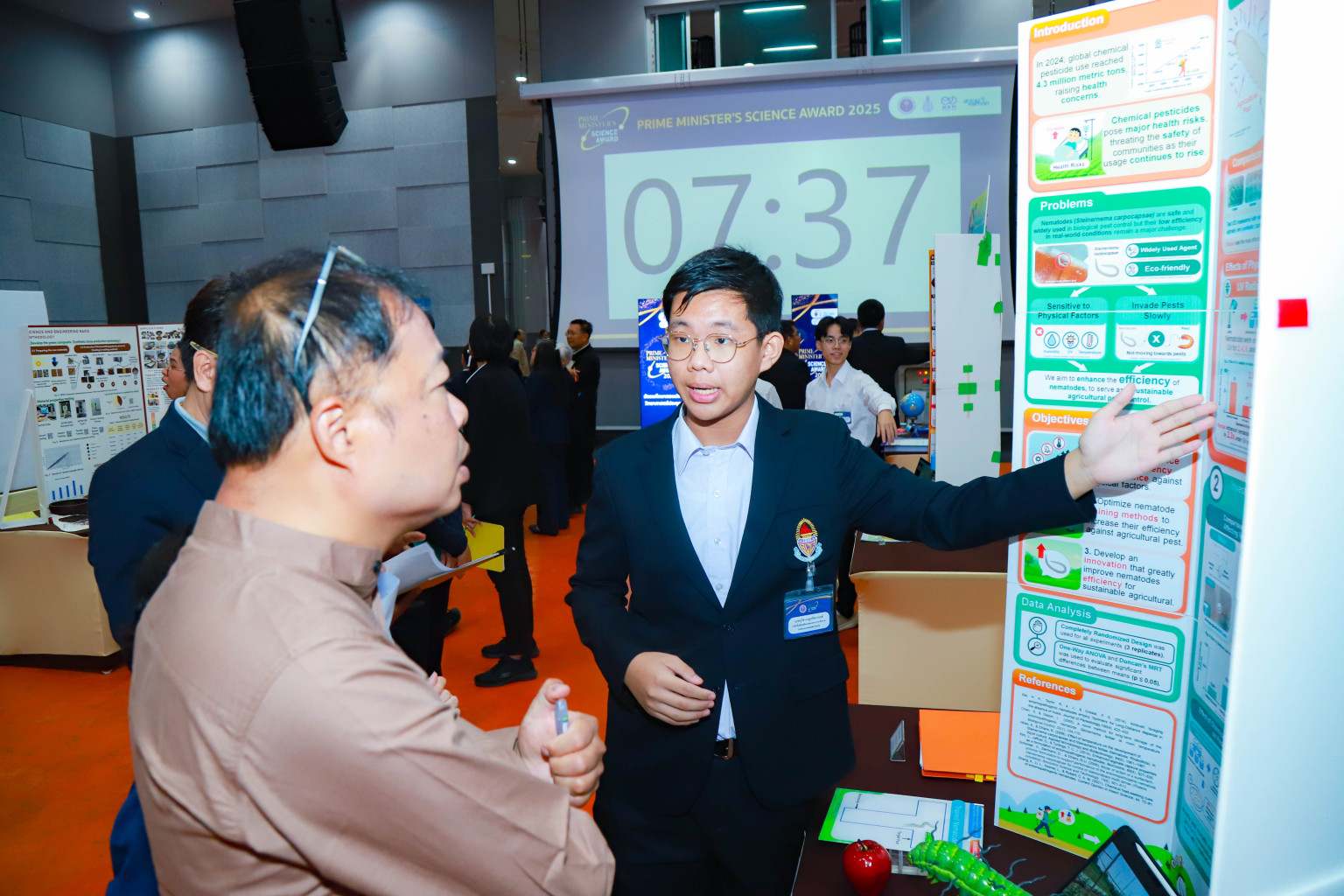 6.รางวัล NSM Science Communication Award ระดับมัธยมศึกษาตอนปลาย สาขาวิทยาศาสตร์ชีวภาพ สนับสนุนโดย องค์การพิพิธภัณฑ์วิทยาศาสตร์แห่งชาติ (อพวช.) หรือ NSM ได้แก่ ทีมโรงเรียนกรุงเทพคริสเตียนวิทยาลัย จ.กรุงเทพฯ กับ โครงงานการเพิ่มประสิทธิภาพของไส้เดือนฝอยในการควบคุมศัตรูพืชแบบชีวภาพสมาชิกในทีม ได้แก่นายบุริศ เบญจรัตนานนท์ นายปภาวิน คงคติธรรมซึ่งมี นายชนันท์ เกียรติสิริสาสน์ เป็นครูที่ปรึกษา และนางสาววนิดา ภู่เอี่ยม ที่ปรึกษา