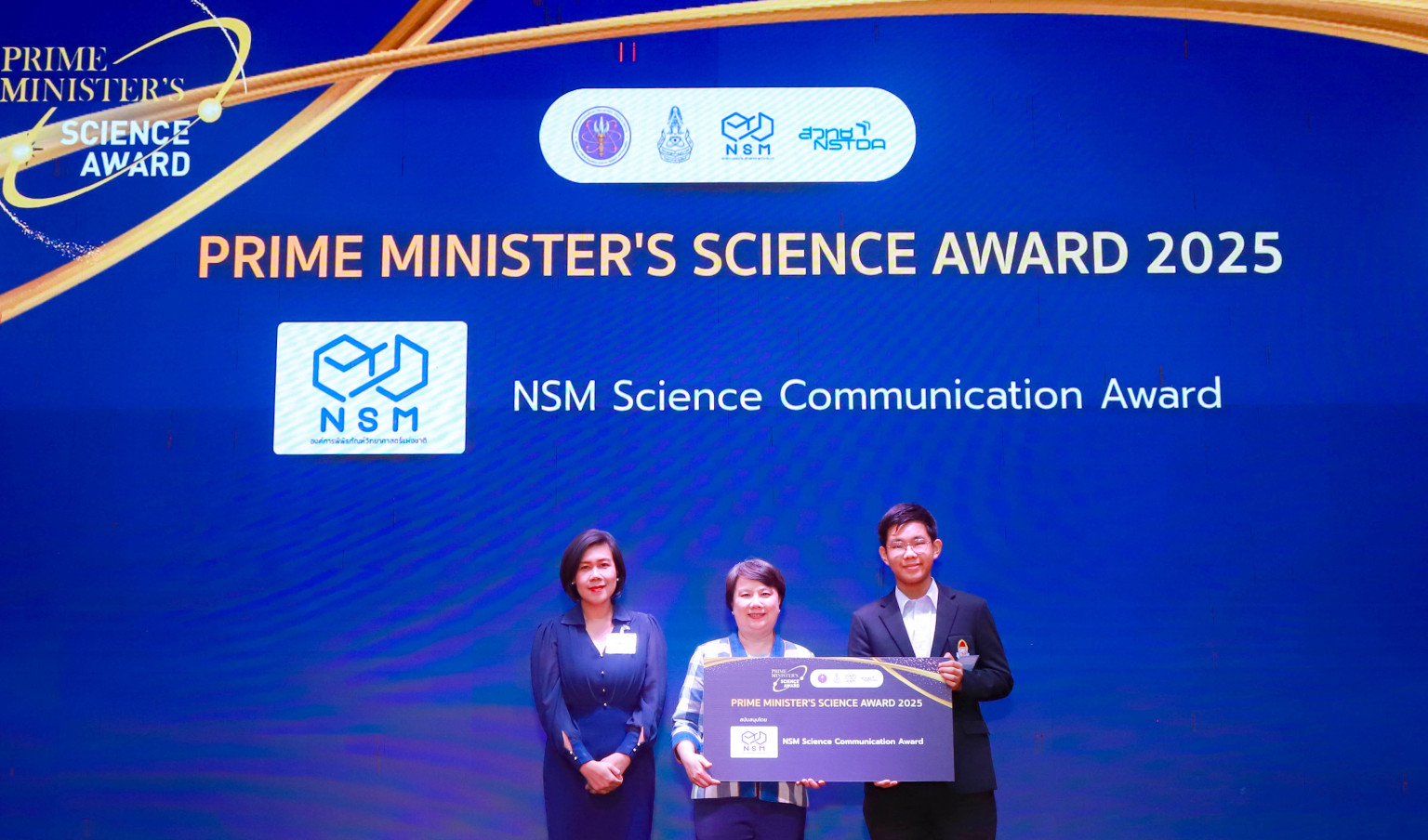เมื่อวันที่ 26 ก.ค. ดร.กรรณิการ์ เฉิน รองผู้อำนวยการองค์การพิพิธภัณฑ์วิทยาศาสตร์แห่งชาติ (อพวช.) หรือ NSM กระทรวงการอุดมศึกษา วิทยาศาสตร์ วิจัยและนวัตกรรม (อว.) ร่วมแสดงความยินดีและมอบรางวัล Special Award หรือรางวัลพิเศษในโครงการ Prime Minister’s Science Award 2025 โดยในปีนี้มี 6 ทีมที่สามารถสร้างสรรค์ผลงานโดดเด่นจนได้รับ รางวัลพิเศษจากผู้สนับสนุนทั้งภาครัฐและเอกชนไปครอง ได้แก่