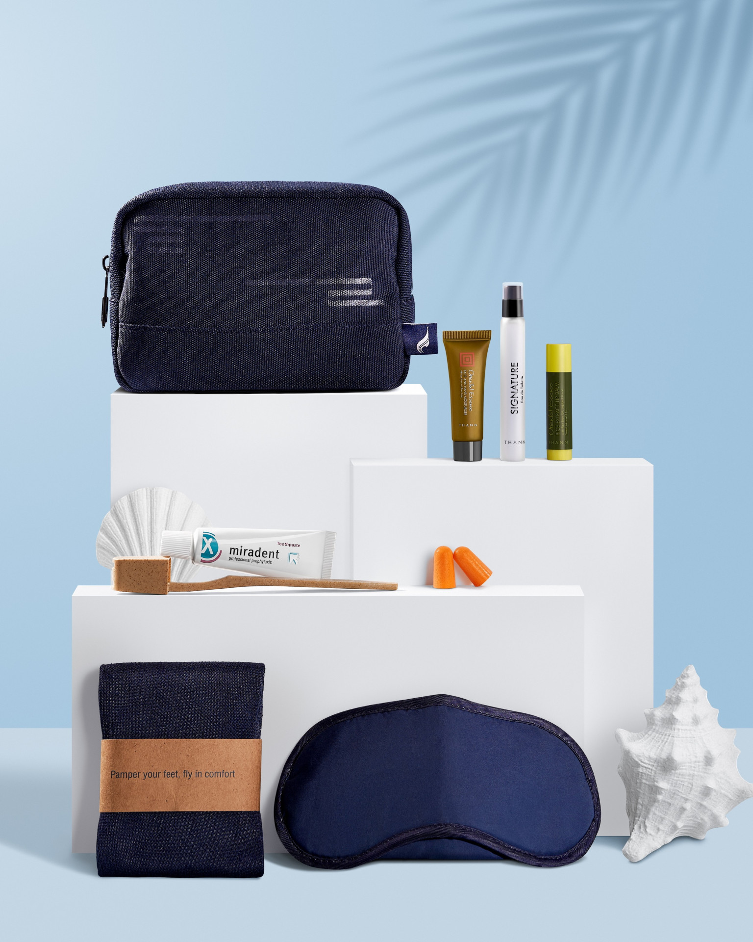 โดยสามารถนำกลับมาใช้ซ้ำในชีวิตประจำวันได้ สะท้อนแนวคิดการท่องเที่ยวที่รับผิดชอบต่อสิ่งแวดล้อม ซึ่ง Amenity Kit ดีไซน์ใหม่นี้ ประกอบด้วย กระเป๋าผ้าลายปลาดาวสีฟ้า, ผ้าปิดตา, ถุงเท้า, แปรงสีฟัน, ยาสีฟัน, ที่อุดหู, ลิปบาล์ม, ครีมทามือ และน้ำหอม (Eau de Toilette) ซึ่งจะเริ่มให้บริการบนเที่ยวบินระหว่างประเทศ ในเส้นทาง กรุงเทพฯ – มัลดีฟส์ และ เส้นทาง สมุย – ฮ่องกง