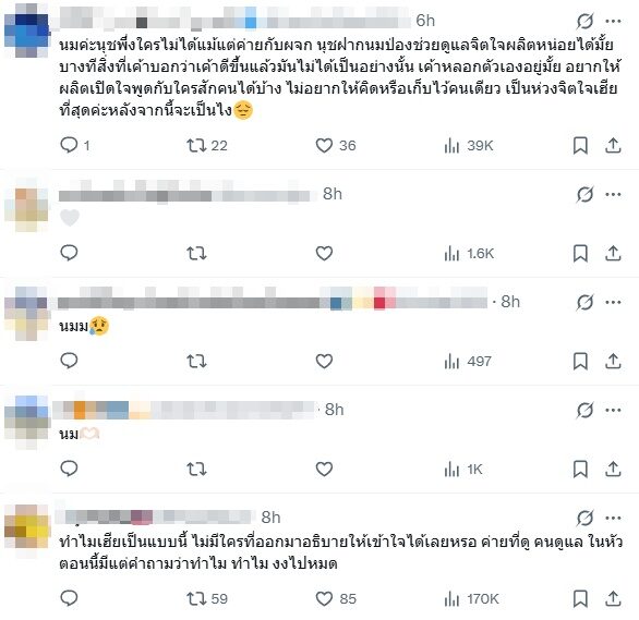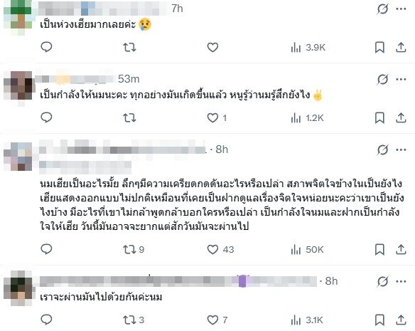 -นมเฮียเป็นอะไรมั้ย ลึกๆมีความเครียดกดดันอะไรหรือเปล่า สภาพจิตใจข้างในเป็นยังไง เฮียแสดงออกแบบไม่ปกติเหมือนที่เคยเป็นฝากดูแลเรื่องจิตใจหน่อยนะคะว่าเขาเป็นยังไงบ้าง มีอะไรที่เขาไม่กล้าพูดกล้าบอกใครหรือเปล่า เป็นกำลังใจนมและฝากเป็นกำลังใจให้เฮีย วันนี้มันอาจจะยากแต่สักวันมันจะผ่านไป