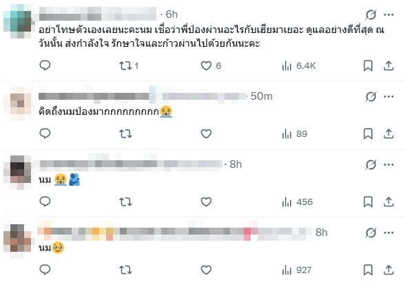 -เป็นกำลังให้นมนะคะ ทุกอย่างมันเกิดขึ้นแล้ว หนูรู้ว่านมรู้สึกยังไง