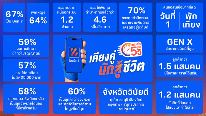 ฟินนิกซ์ (FINNIX) แอปสินเชื่อพลังเอไอหัวใจมนุษย์ โดยบริษัท มันนิกซ์ จำกัด (MONIX) ภายใต้กลุ่มเอสซีบี เอกซ์ ฉลองครบรอบ 5 ปีแห่งการสร้างโอกาสทางการเงินให้คนไทยห่างไกลจากหนี้นอกระบบ เผยอินไซต์ธุรกิจ และพฤติกรรมผู้ใช้งานแอปกว่า 5 ล้านรายทั่วประเทศ พร้อมปล่อยแคมเปญใหม่ “เคียงคู่นักสู้ชีวิต (The Life Fighters)” เพื่อสนับสนุนและเชิดชูคนมาหากินหรือนักสู้ชีวิตให้เข้าถึงสินเชื่อถูกกฎหมายได้อย่างมั่นใจ ทั้งยังปฏิวัติวงการสินเชื่อเงินด่วนด้วยฟีเจอร์ใหม่ “อนุมัติไวสุดใน 5 วิ” ที่ตอบโจทย์ลูกค้าในยุคเอไอได้รวดเร็วทันใจ ตอกย้ำความเป็นผู้นำด้านนวัตกรรมสินเชื่อดิจิทัลอย่างแท้จริง