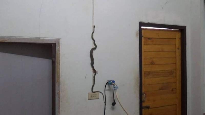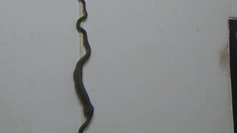 อีกทั้งงูเขียวชนิดนี้ ก็เป็นงูที่ไม่มีพิษ จึงไม่น่ากลัวเท่าไร ซึ่งงูเขียวตัวดังกล่าว ต้องใช้เวลานานกว่า 5 นาที จึงสามารถพาตัวเองปีนผนังเลื้อยเข้ารูและออกไปจากตัวอาคารได้ในที่สุด