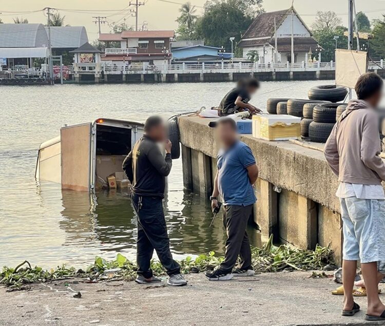 ไม่ต้องรอของกันนะครับ กระบะขนส่งดัง ไหลตกเจ้าพระยา พัสดุเสียหายทั้งคัน