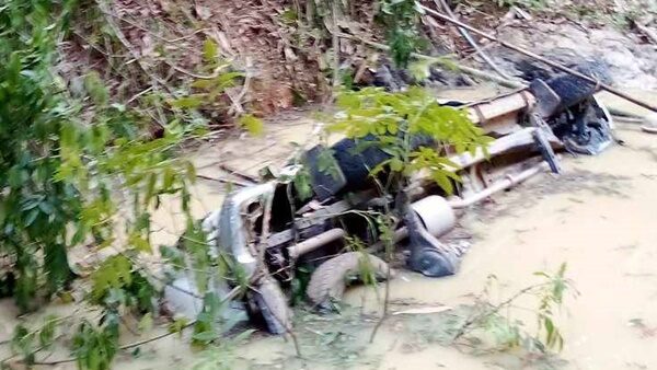 โดยริมถนนด้านขวามือ เป็นเหวลึก ประมาณ 10 เมตร เจ้าหน้าที่พบร่องรอยต้นไม้ขนาดเล็กใหญ่ข้างทางพังราบเป็นแนวยาวลงไป และพบรถกระบะตอนครึ่ง สีขาว ยี่ห้อโตโยต้า ทะเบียน บล3103 ชุมพร สภาพพลิกหงายท้องอยู่ในน้ำ ลึกกว่า 3 เมตร ข้างมีแท็งก์น้ำ ขนาด 2,000 ลิตร และอุปกรณ์ต่าง ๆ ลอยเกลื่อนอยู่ในน้ำ