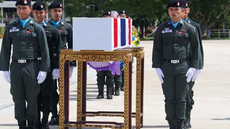 จากนั้น ได้กระทำพิธีส่งร่างผู้วายชนม์ไปประกอบพิธีบำเพ็ญกุศล และฌาปนกิจ ตามหลักศาสนายังภูมิลำเนา ณ วัดวังก์พง อำเภอปราณบุรี จังหวัดประจวบคีรีขันธ์ ด้วยเฮลิคอปเตอร์ใช้งานทั่วไป แบบ 412 หรือ Bell 412 EPI ของสำนักงานตำรวจแห่งชาติ