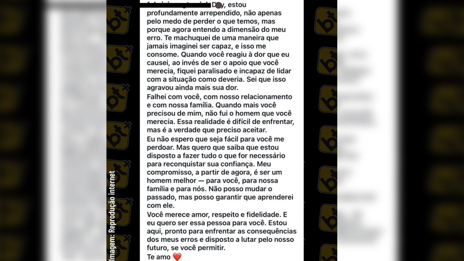 หลังจากตกเป็นประเด็นดัง ฟาบริซิโอได้โพสต์จดหมายขอโทษลงบนโซเชียลว่า เขารู้สึกเสียใจและตระหนักถึงความผิดพลาดที่ทำลงไป ว่าสร้างความเจ็บปวดให้ภรรยาและครอบครัวมากเพียงใด เขาไม่ได้คาดหวังว่าจะได้รับการให้อภัย แต่อยากให้เธอรับรู้ว่าเขายินดีที่จะทำทุกอย่างเพื่อให้ได้ความไว้ใจคืนมา เขาไม่สามารถเปลี่ยนแปลงอดีตได้ แต่สัญญาว่าจะนำความผิดพลาดมาเป็นบทเรียน และหวังว่าเธอจะให้โอกาสเขา