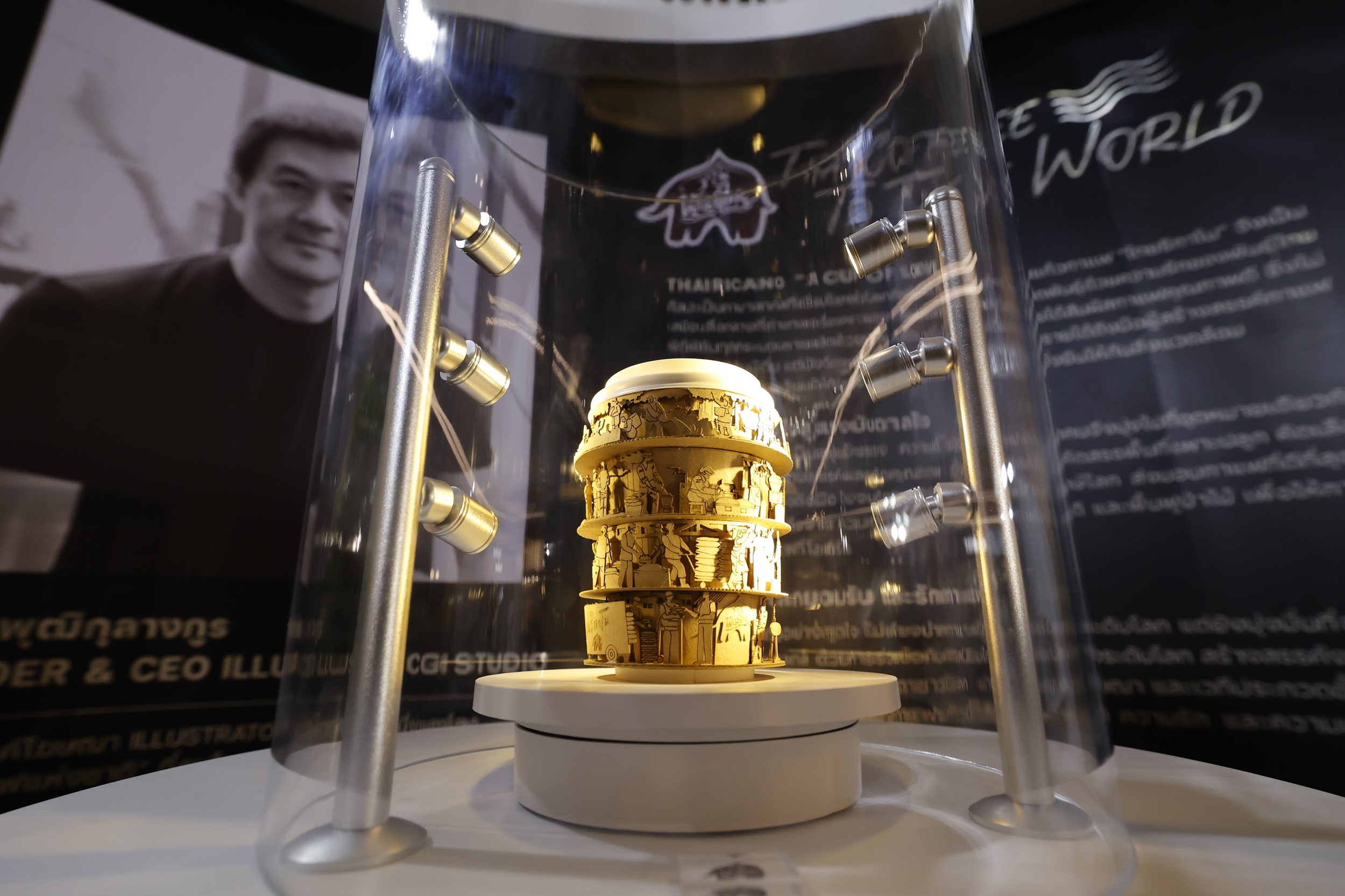 นอกจากนี้ยังสร้างความตื่นเต้น ด้วยการเปิดตัวแก้วไทยริกาโนสุดคราฟต์ขนาดยักษ์สูงกว่า 3 เมตรให้ทุกคนได้เห็นรายละเอียดงานศิลปะกันแบบชัด ๆ พร้อมทั้งอยากจะขอบคุณด้อมใจฟู ‘คัลแลน-พี่จอง’ ทุกคนด้วยของขวัญจากกาแฟพันธุ์ไทยกับกิจกรรมสุดพิเศษให้ดื่มด่ำกับไทยริกาโนในแก้วลายลิมิเต็ดเอดิชั่นที่เปิดตัวในงานนี้เป็นที่แรก