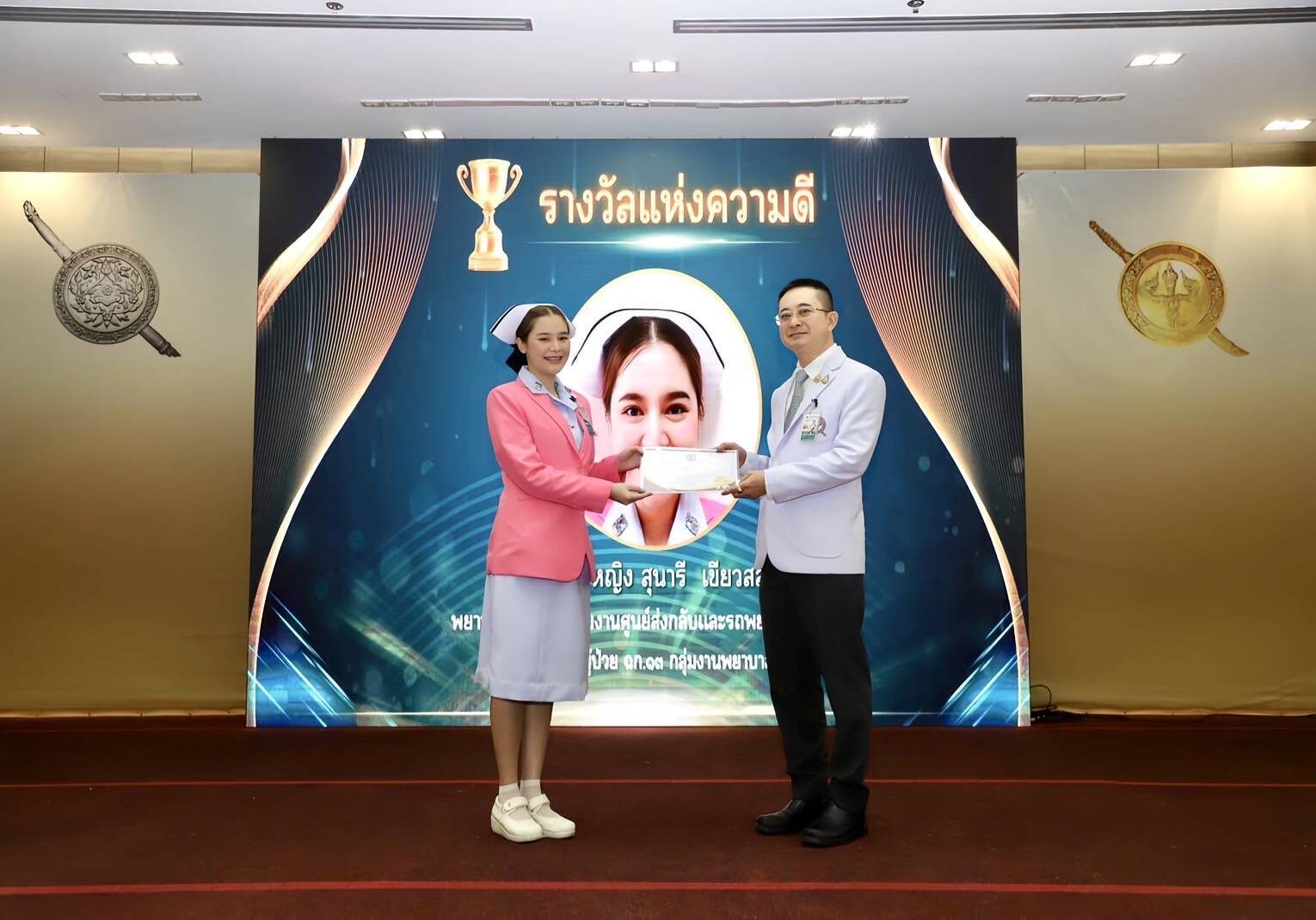 ว่าที่ ร.ต.ท.หญิง สุนารี เขียวสลับ ได้รับใบประกาศเกียรติคุณความดีจาก พล.ต.ท.ทวีศิลป์ เวชวิทารณ์ นายแพทย์ใหญ่ (สบ 8) ในฐานะบุคคลที่ให้ความช่วยเหลือกิจการสาธารณะหรือมีจิตสาธารณะเป็นที่ประจักษ์