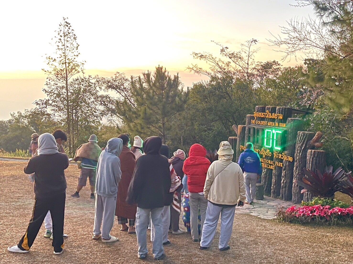 สำหรับวันนี้นักท่องเที่ยวต่างตื่นเต้นที่เห็นค่าอุณหภูมิลดต่ำสุดเหลืองเพียง 0 องศา หนาวถูกใจนักท่องเที่ยวที่มาเยือน ซึ่งเป็นผลมาจากมวลอากาศเย็นที่พัดปกคลุมประเทศไทยตอนบน และคาดว่าอุณหภูมิจะหนาวเย็นต่อเนื่องไปอีกตลอดทั้งเดือน